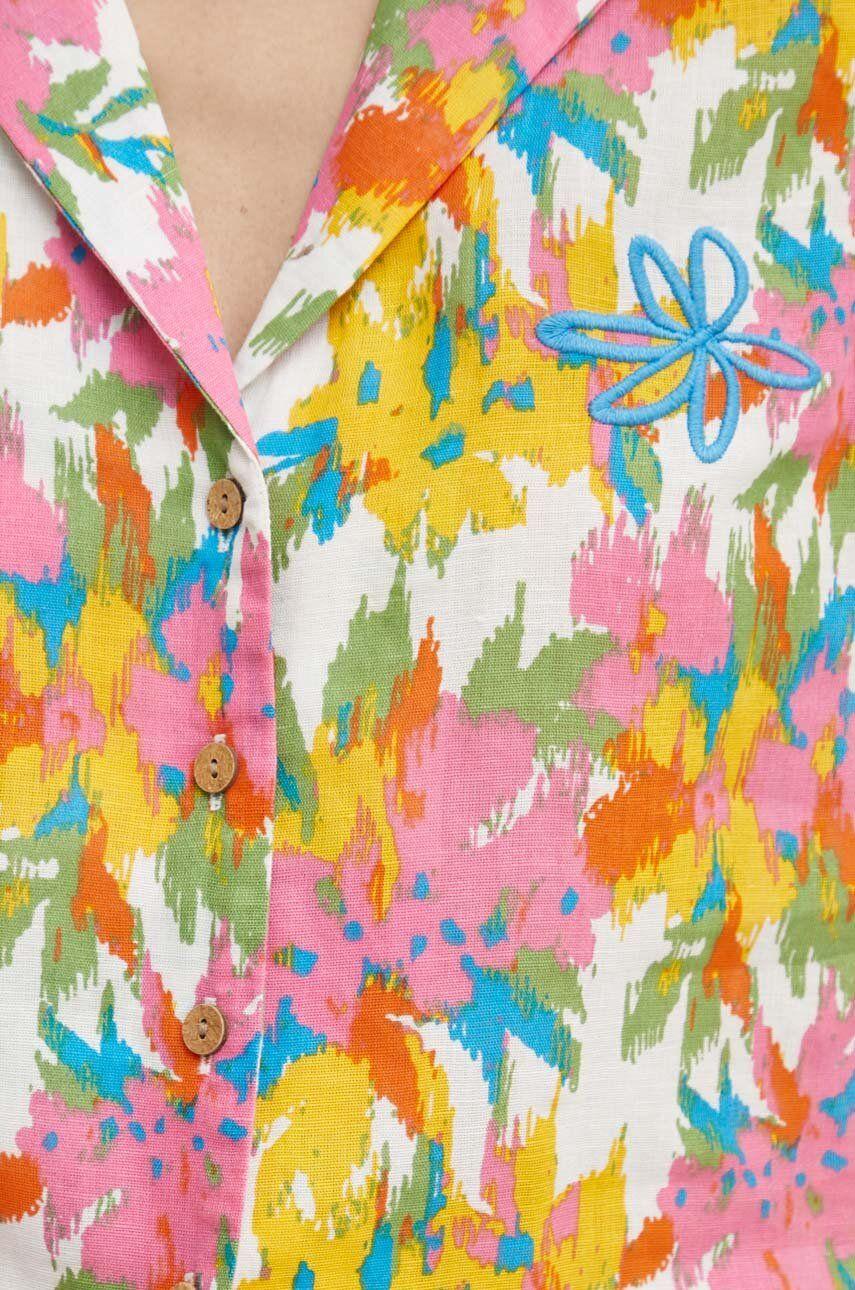 Картинная рубашка из узорчатого материала. Модель изготовлена ​​из легкого и дышащего материала с высоким процентом льна.