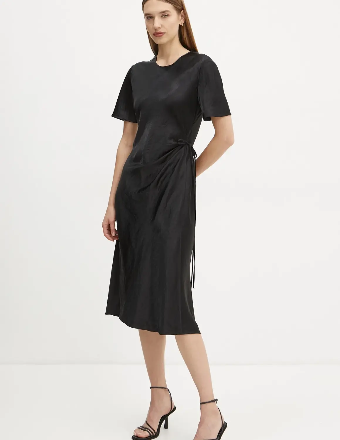 Платье Марка О'Поло. Изготовлен из однотонной ткани. Модель изготовлена ​​из тонкого и текучего материала.