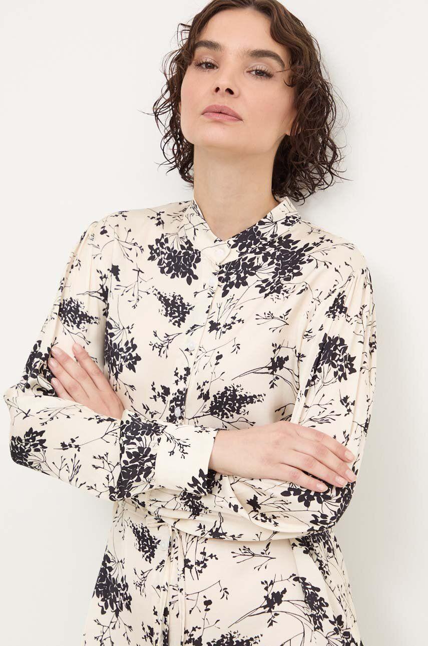 Воздушное платье Answear Lab. Изготовлен из узорчатой ​​ткани. Модель изготовлена ​​из льняной ткани, что гарантирует высокую устойчивость.