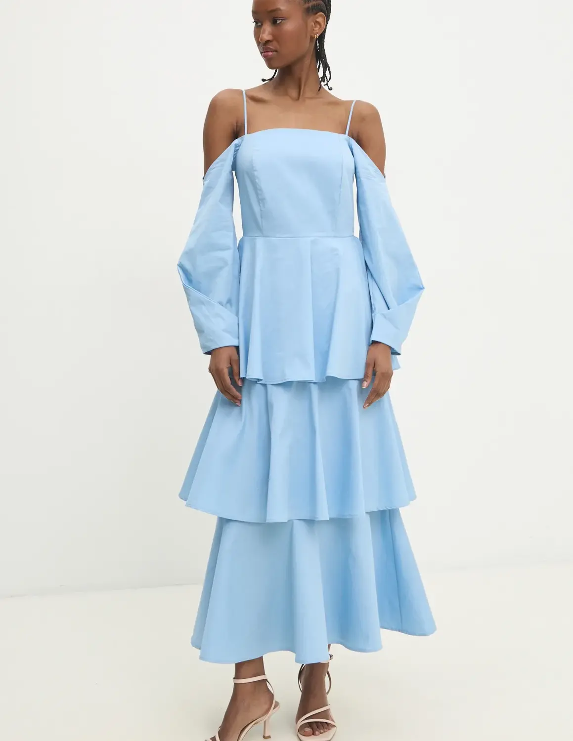 Платье Answear Lab. Изготовлен из однотонной ткани. Модель изготовлена ​​из чрезвычайно комфортной ткани с высоким процентом хлопка.
