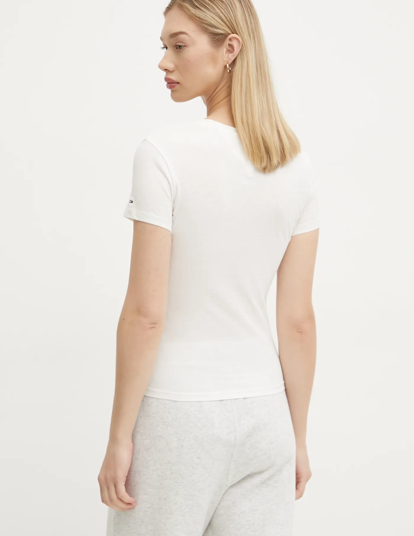 Футболка Tommy Jeans изготовлена ​​из тонкого эластичного трикотажа. Модель изготовлена ​​из дышащего хлопкового материала.