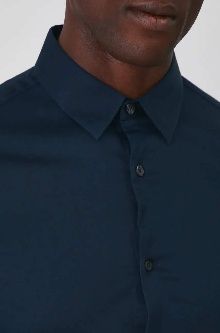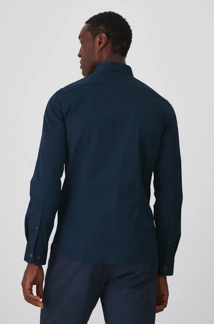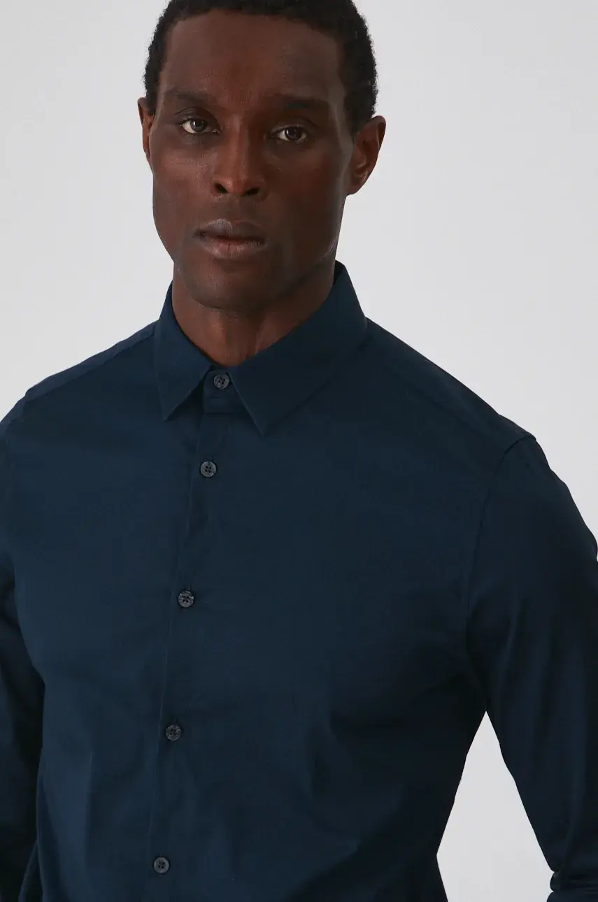 Медицинская рубашка. Изготовлен из однотонной ткани. Модель оснащена классическим воротником с мягкой подкладкой.