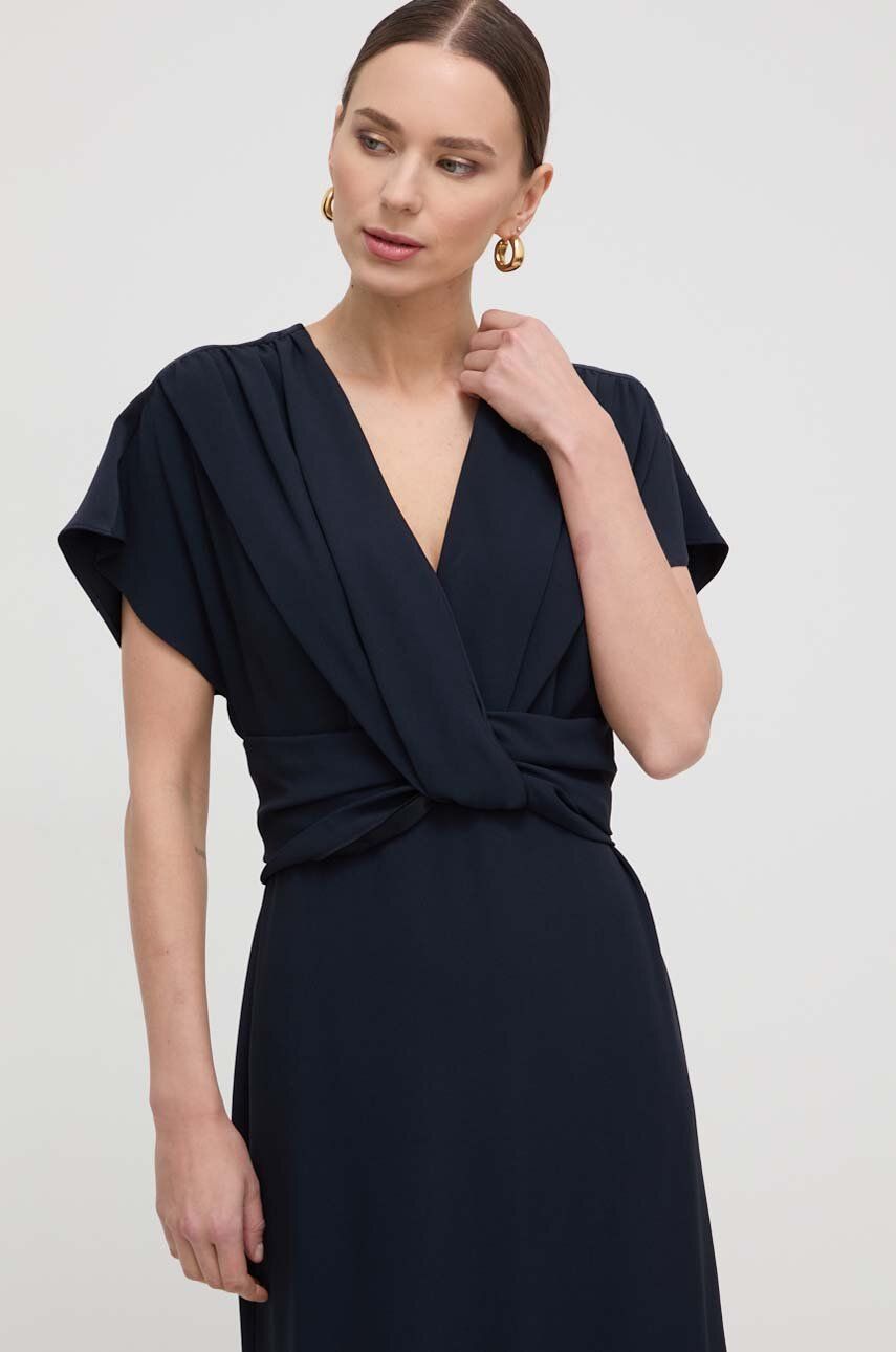 БОСС светлое платье. Изготовлен из однотонной ткани. Модель изготовлена ​​из легкого и дышащего материала с высоким процентом вискозы.