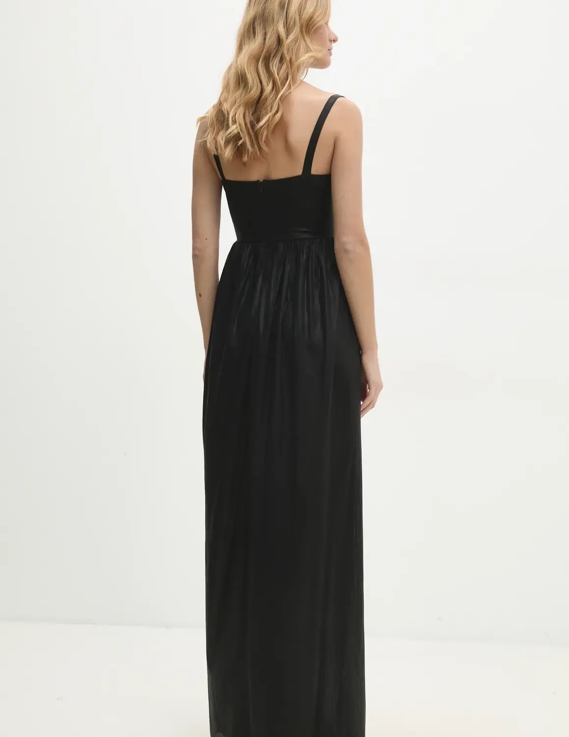 Платье и шорты Answear Lab. Изготовлен из однотонного трикотажа. Модель из блестящей ткани с великолепным эффектом.