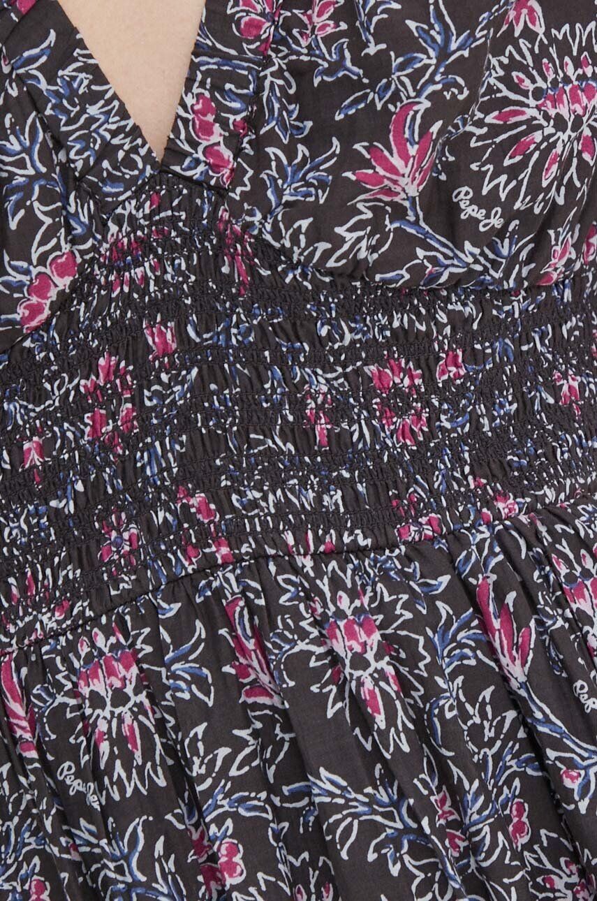 Платье Пепе Джинс. Изготовлен из узорчатой ​​ткани. Модель изготовлена ​​из чрезвычайно комфортной и дышащей ткани.