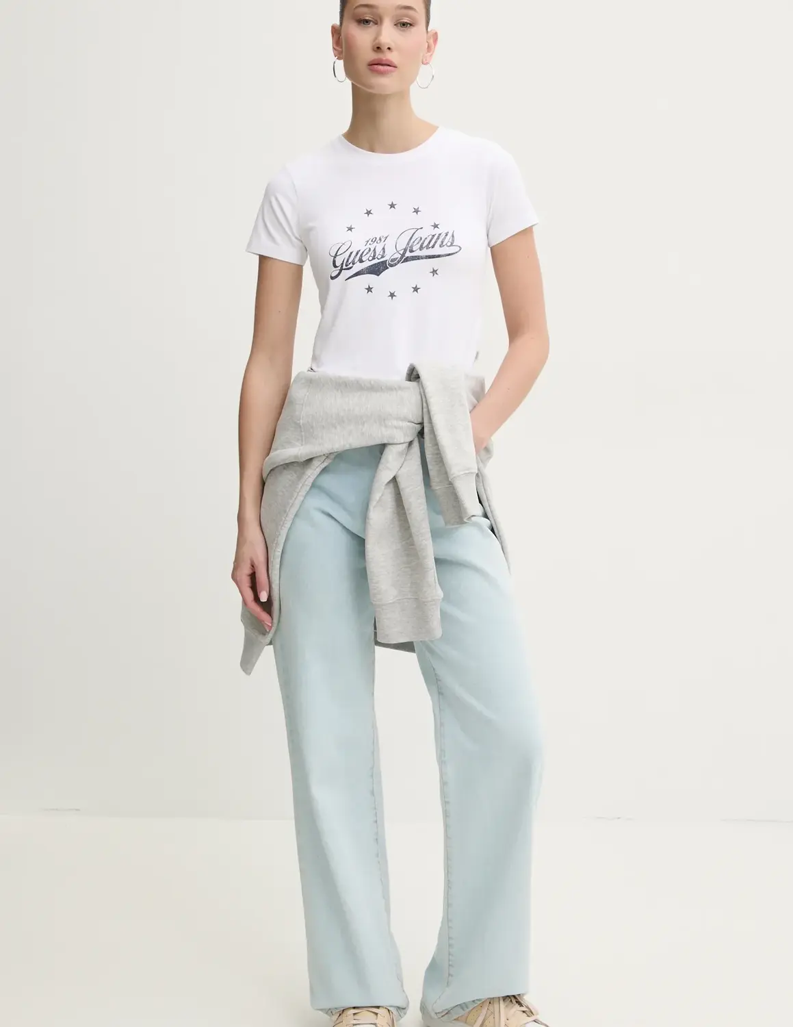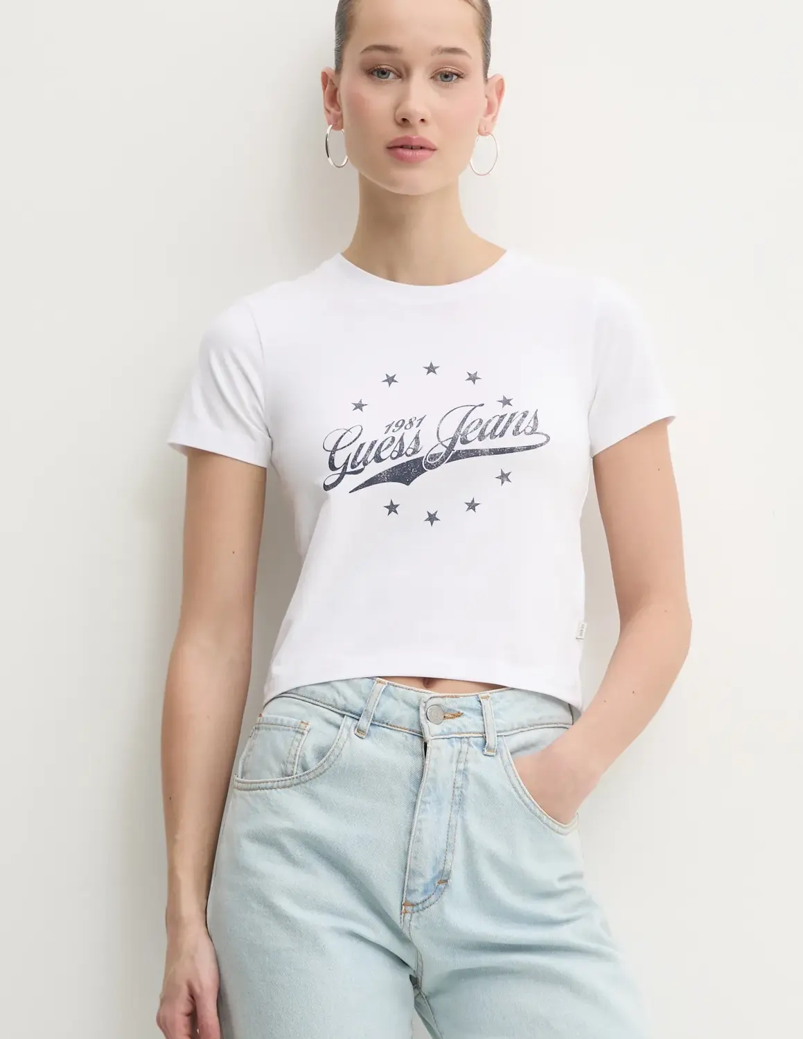 Футболка Guess Jeans изготовлена ​​из высокоэластичного тонкого трикотажа.