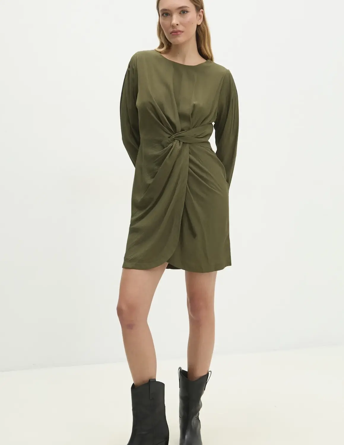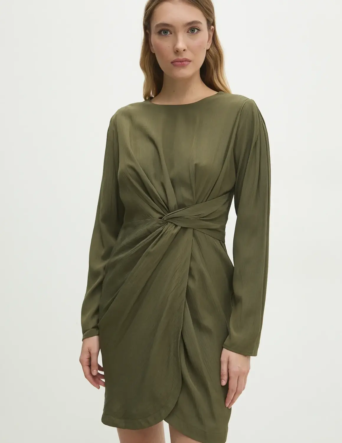 Платье Answear Lab. Изготовлен из однотонной ткани. Содержание полиэстера делает материал более устойчивым к морщинам.