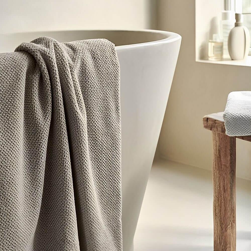 Классическое банное полотенце из мягкой хлопчатобумажной махровой ткани, которое очень хорошо впитывает влагу и быстро сохнет. Петля на одной длинной стороне. Размер 70*140 см.