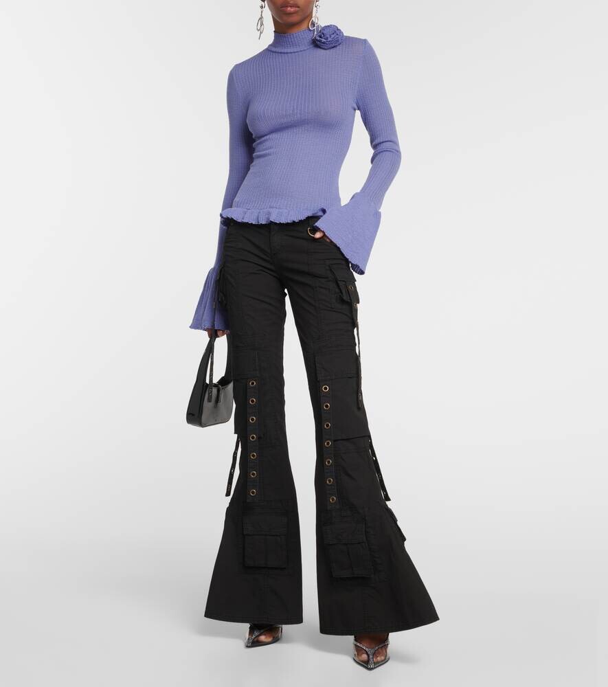 Свитер из шерсти в рубчик с рюшами BLUMARINE, синий 60 593₽