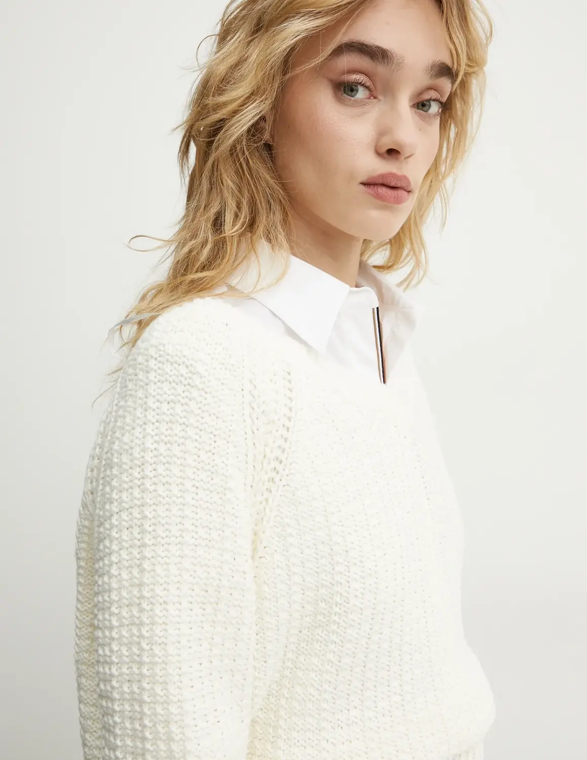 Свитер Морган из эластичного материала без рисунка. Модель изготовлена ​​из дышащего материала с высоким процентом хлопка.