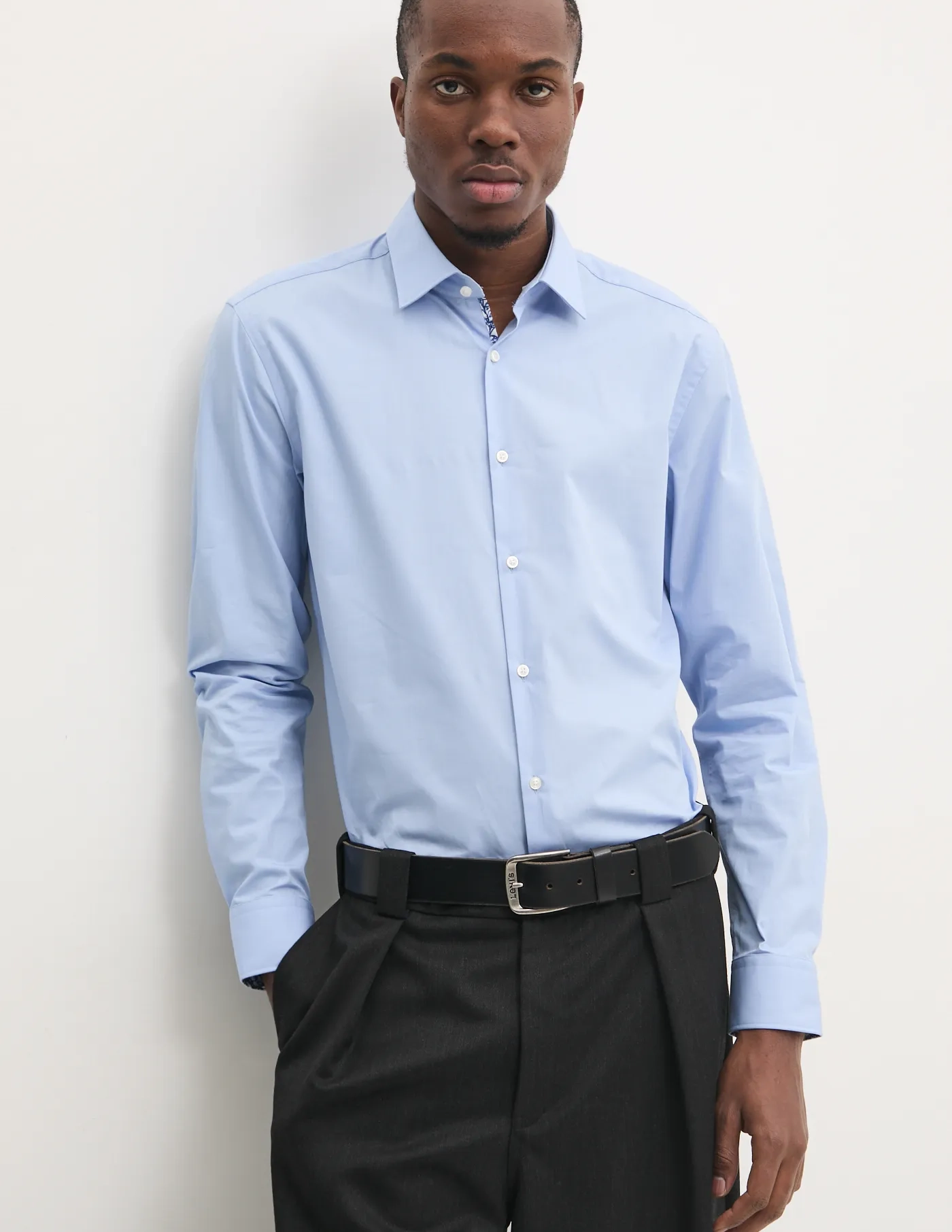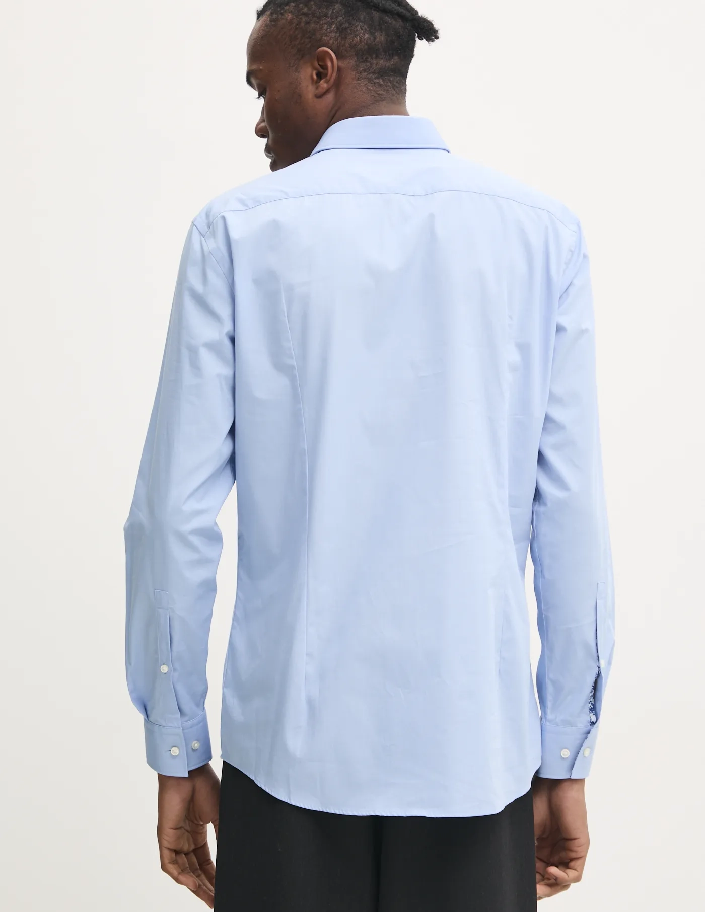 - Жесткие манжеты с двумя пуговицами для индивидуальной посадки.