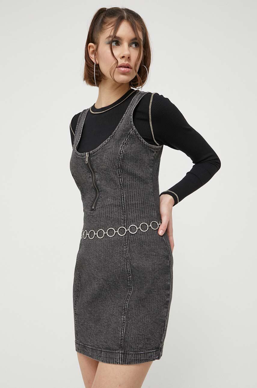 Платье Guess Originals. Изготовлен из джинсовой ткани. Модель изготовлена ​​из эластичного материала и плотно прилегает к телу.