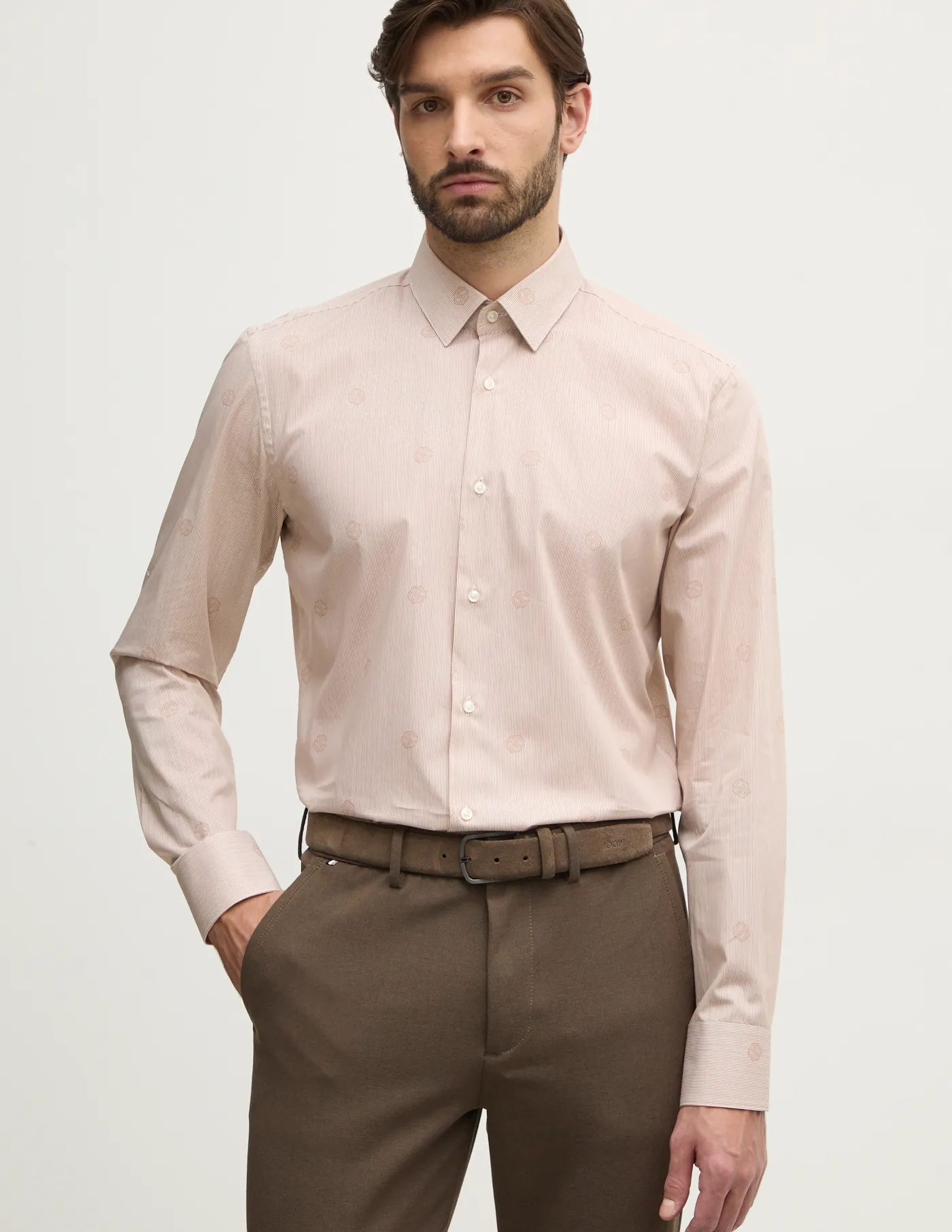 Рубашка BOSS из узорчатой ​​ткани. Модель изготовлена ​​из очень комфортной хлопковой ткани.