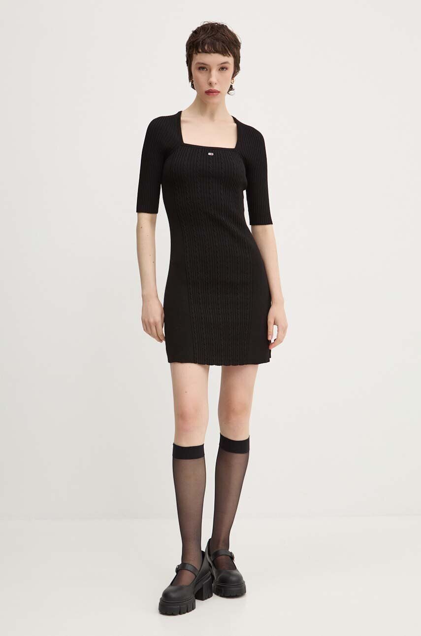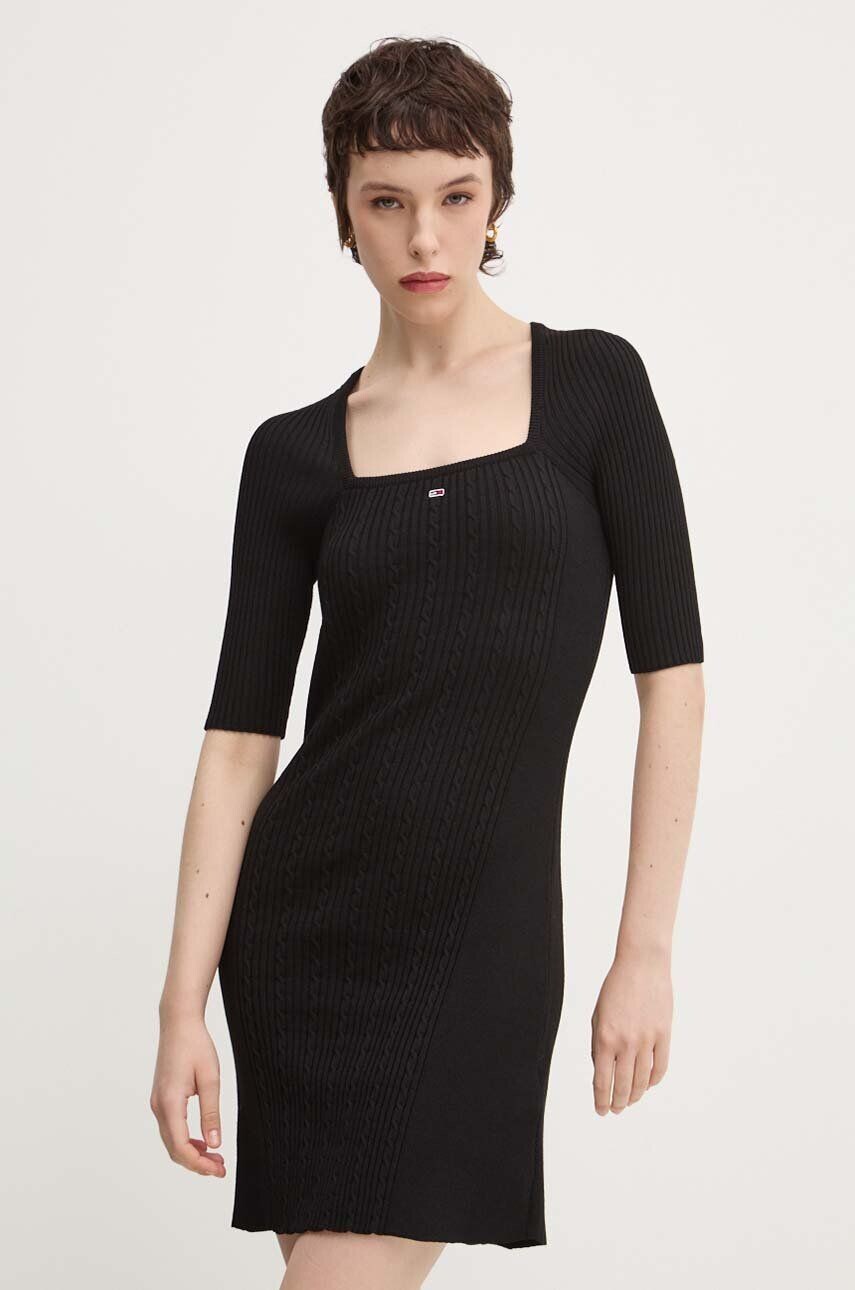 Платье Томми Джинс. Изготовлен из эластичного трикотажа. Добавление полиамида увеличивает долговечность изделия.
