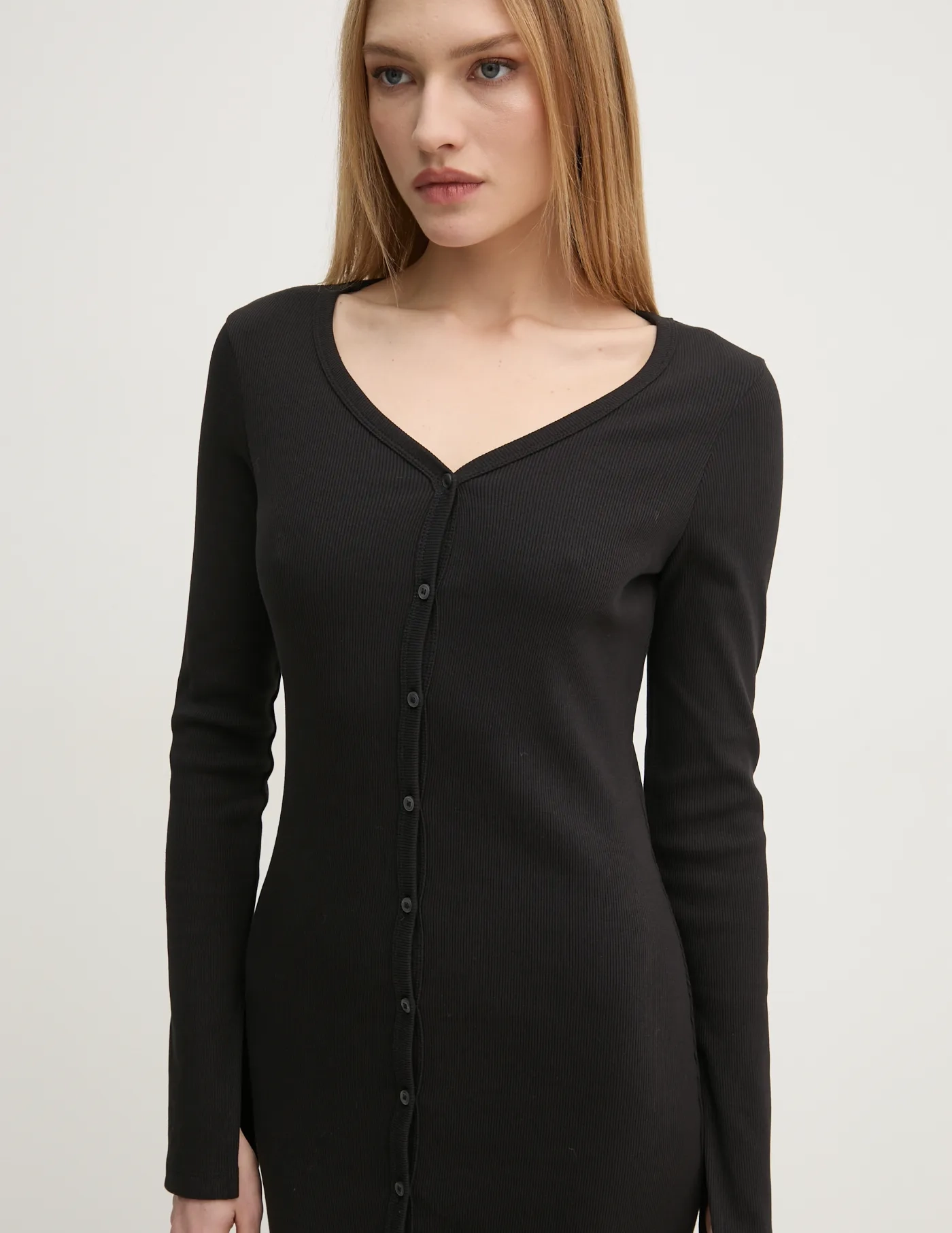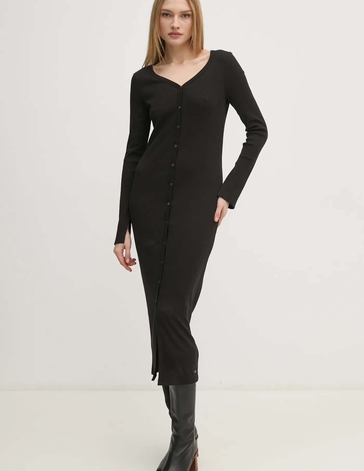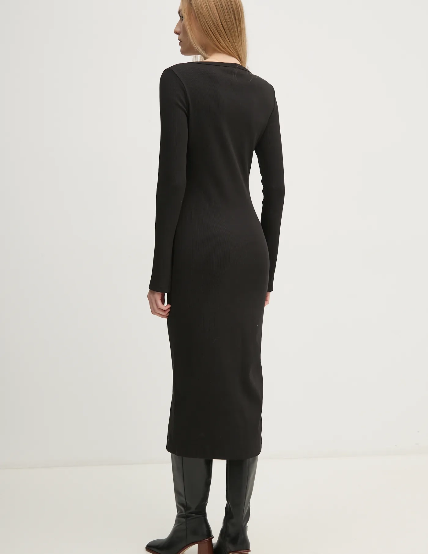 Платье Calvin Klein Jeans. Изготовлен из однотонного трикотажа. Модель изготовлена ​​из чрезвычайно комфортной ткани с высоким процентом хлопка.