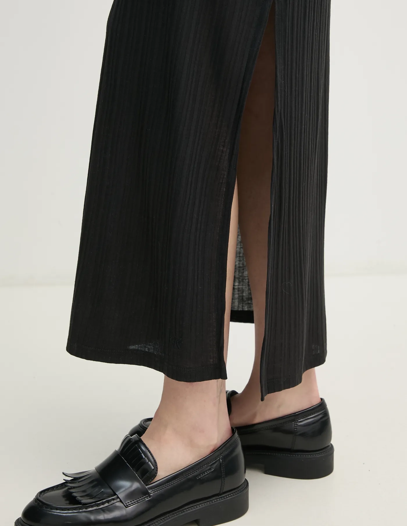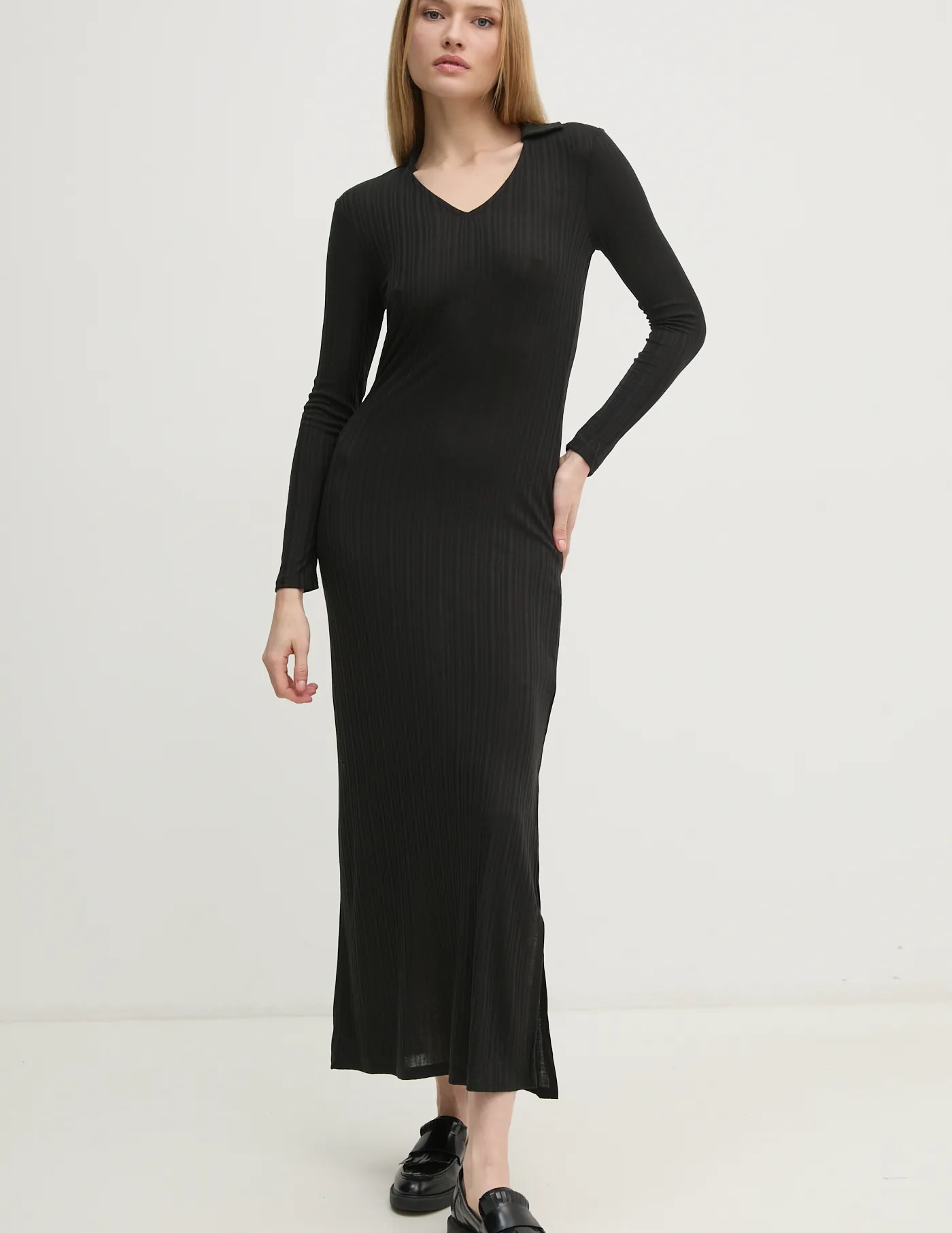 Платье Calvin Klein Jeans. Изготовлен из однотонного трикотажа. Модель изготовлена ​​из чрезвычайно комфортной ткани с высоким содержанием вискозы.
