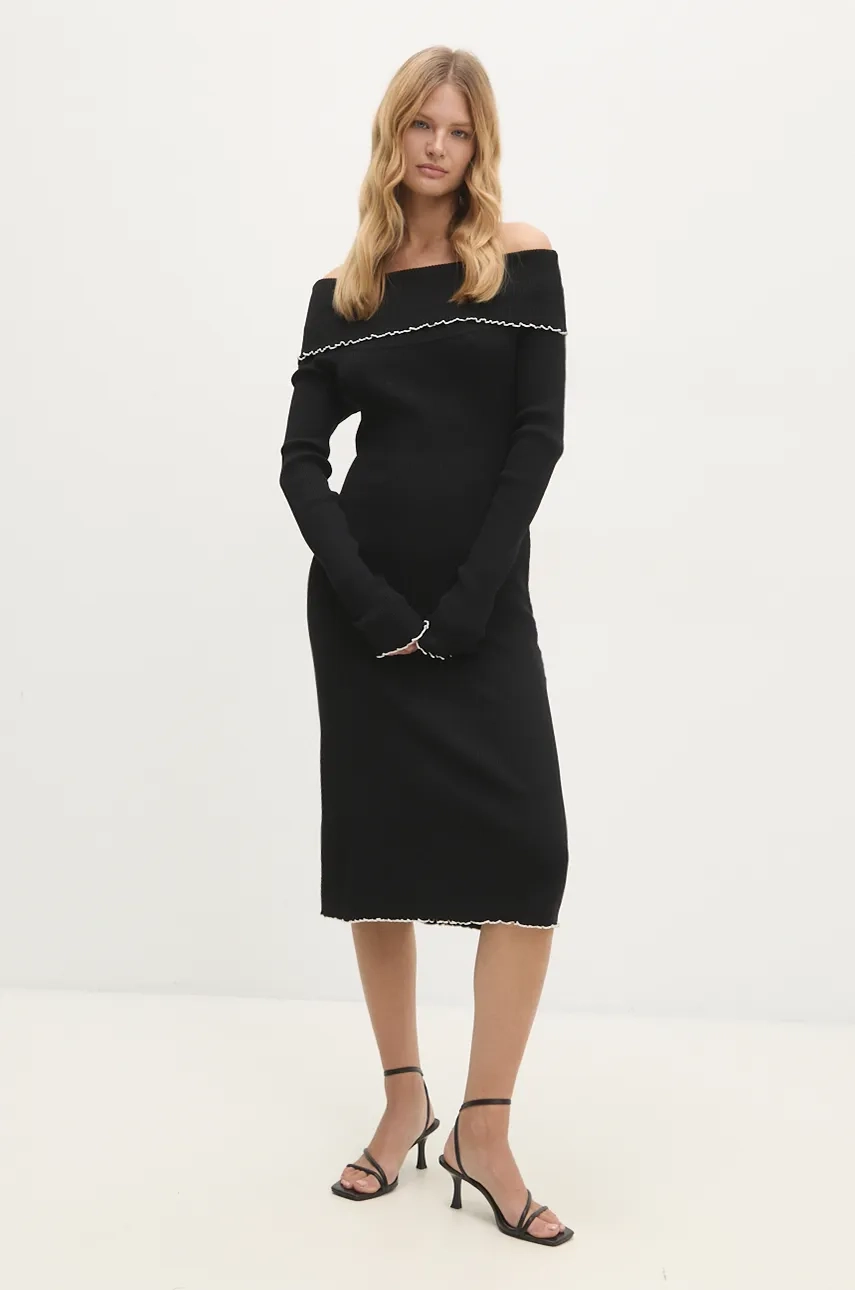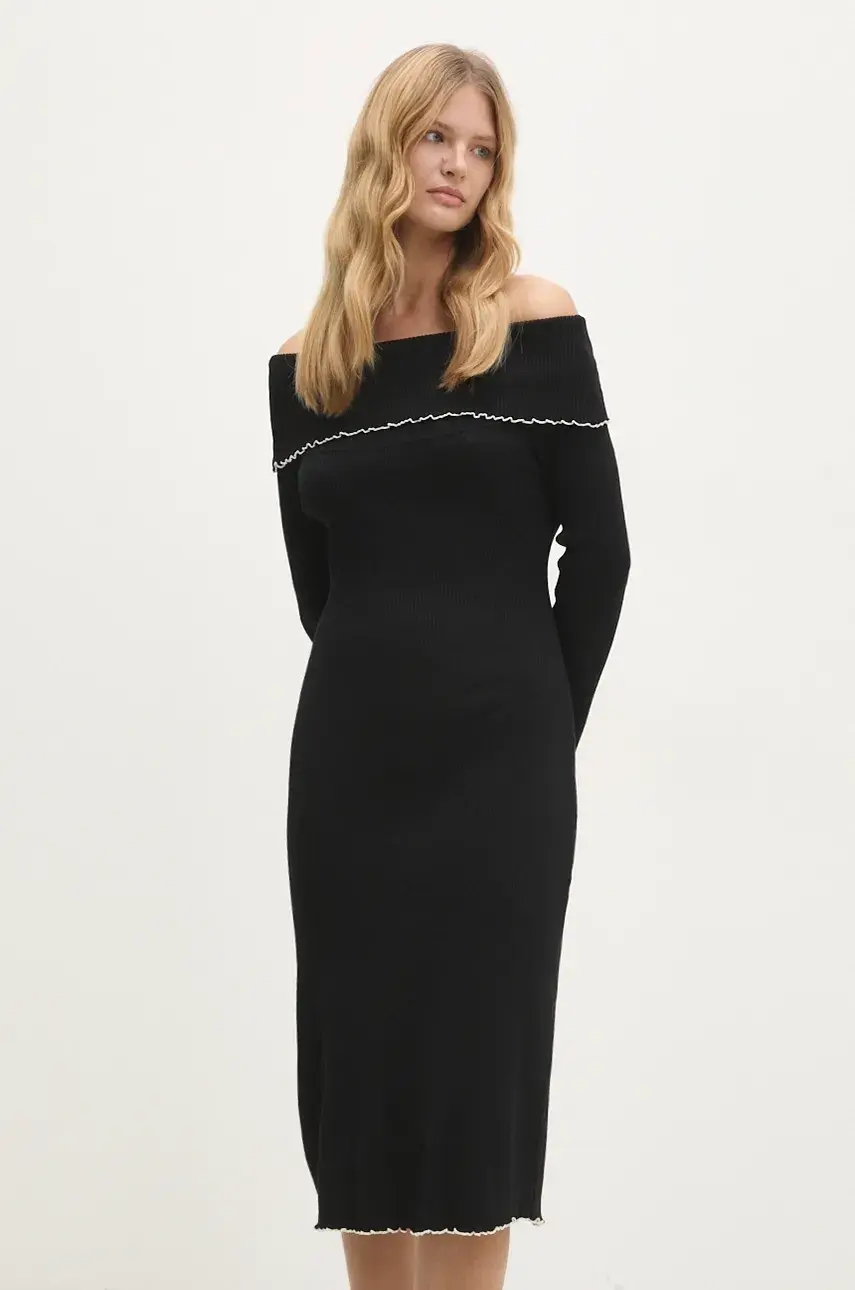 Платье Answear Lab. Изготовлен из однотонного трикотажа. Модель изготовлена ​​из чрезвычайно комфортной ткани с высоким содержанием вискозы.