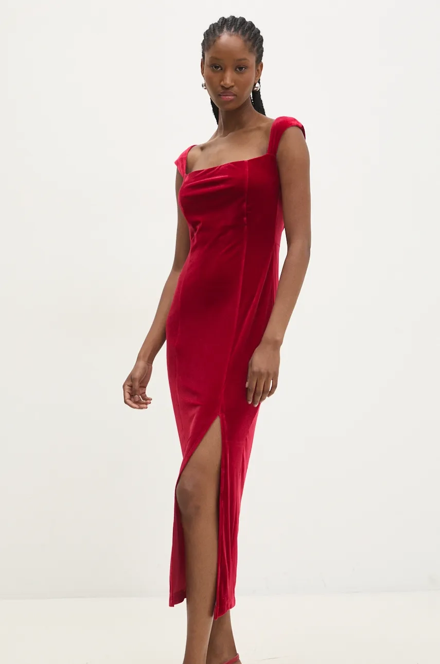 Платье Answear Lab. Выполнено из вельветового трикотажа. Модель выполнена из приятной на ощупь ткани.