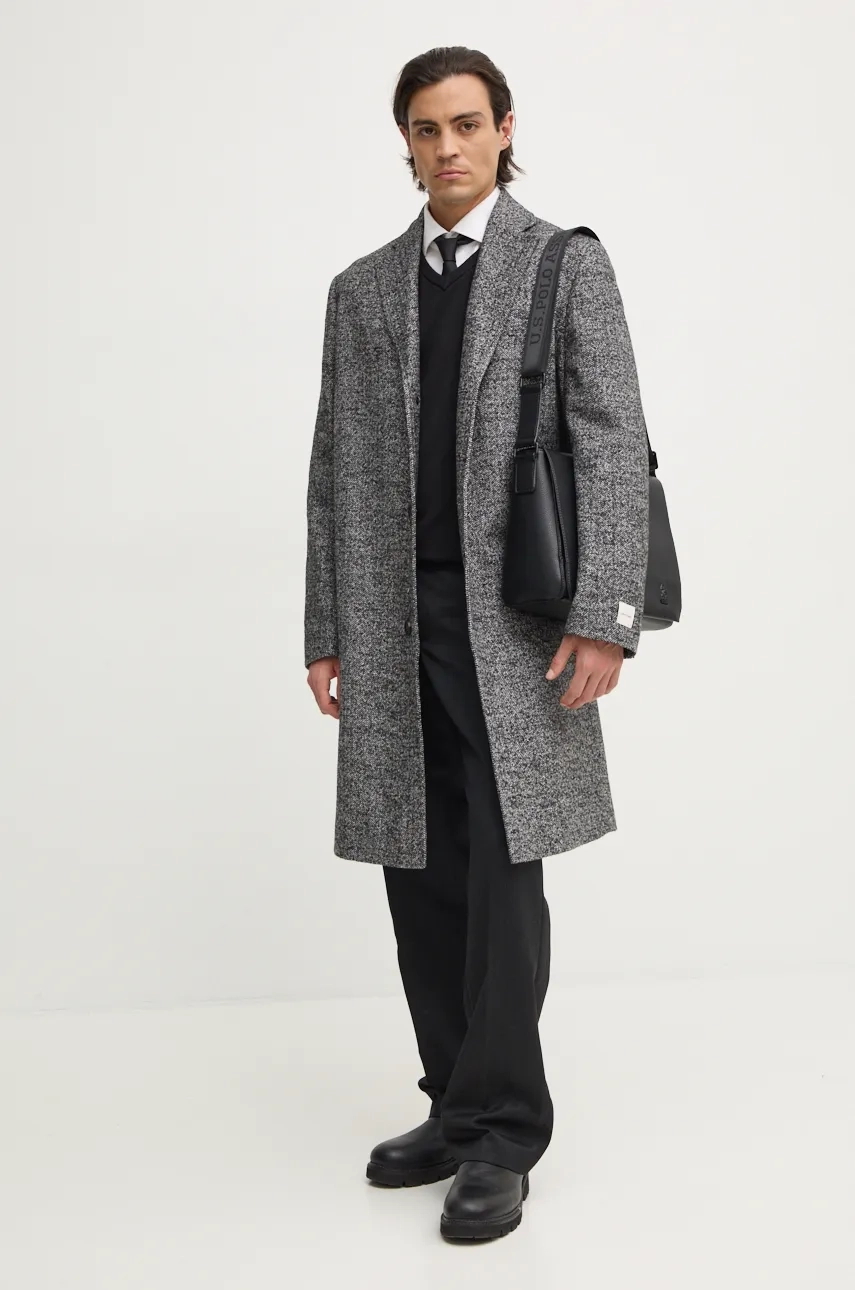 Пальто Кельвин Кляйн. Неутепленная модель из узорчатого материала. Высокое содержание шерсти обеспечивает защиту от холода, а добавление полиэстера повышает устойчивость к морщинам.