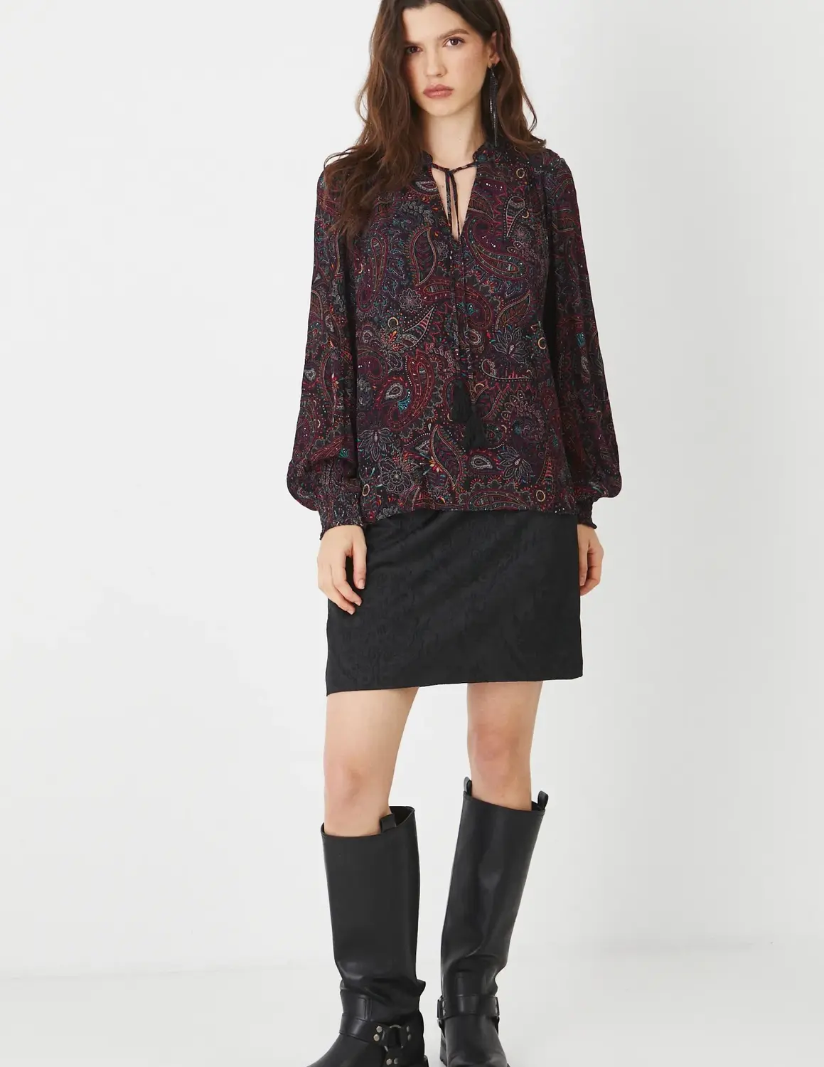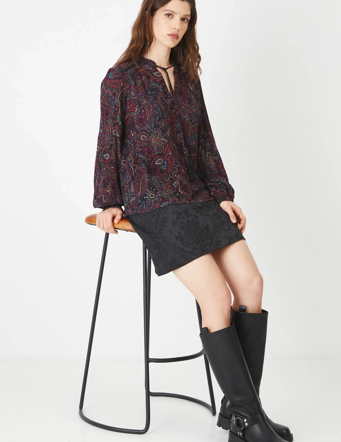 Медицинская рубашка. Модель из узорчатой ​​ткани. V-образный вырез.