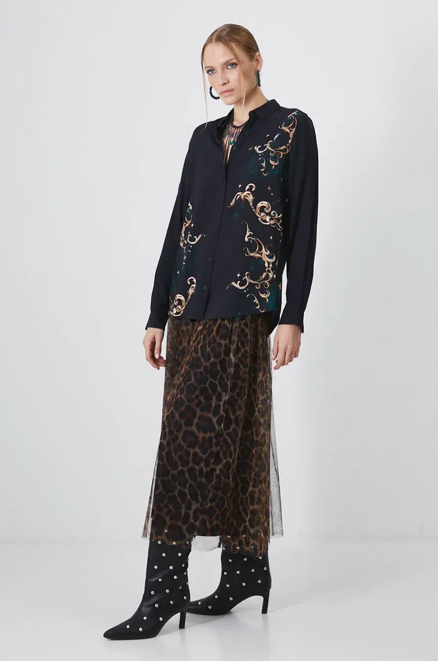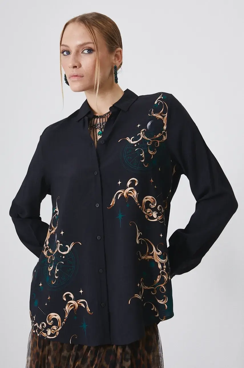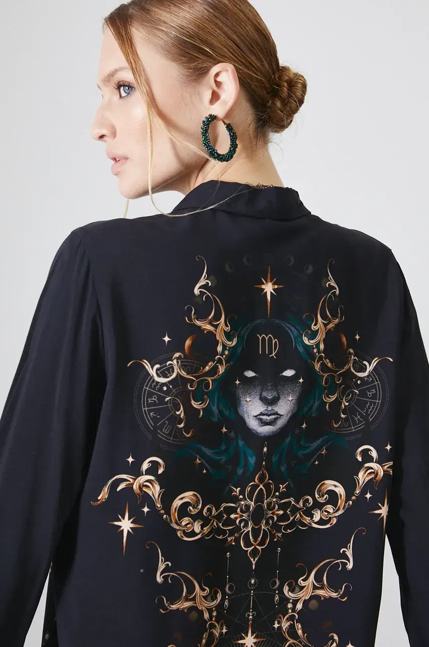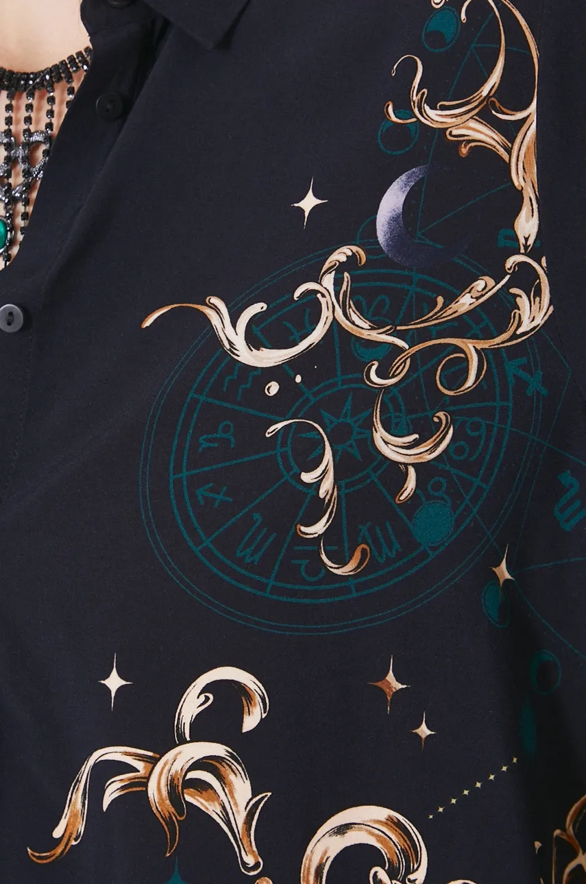 Медицинская рубашка. Изготовлен из принтованной ткани. Оборудован воротником.