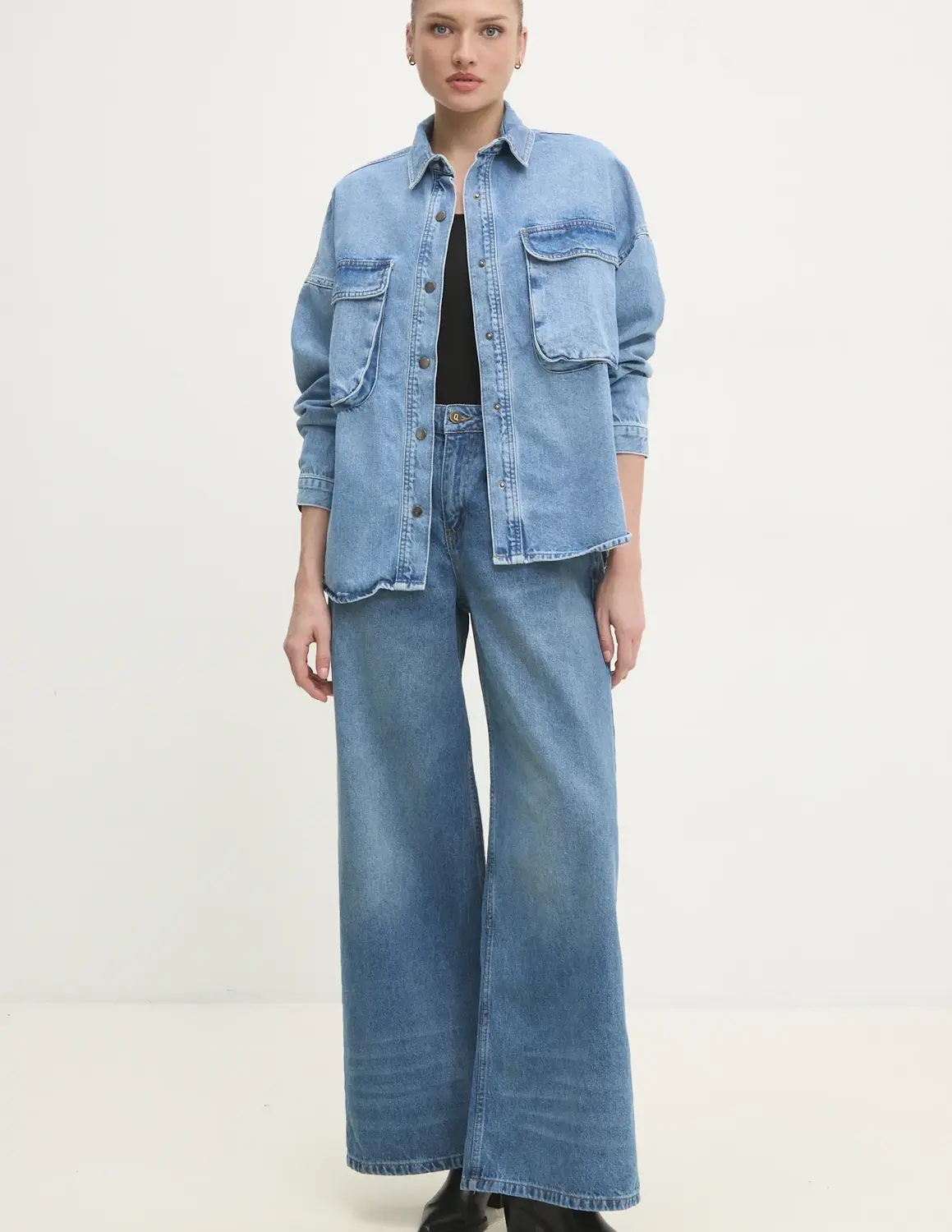 Рубашка Answear Lab из джинсовой ткани. Модель изготовлена ​​из жесткого материала, сохраняющего форму.