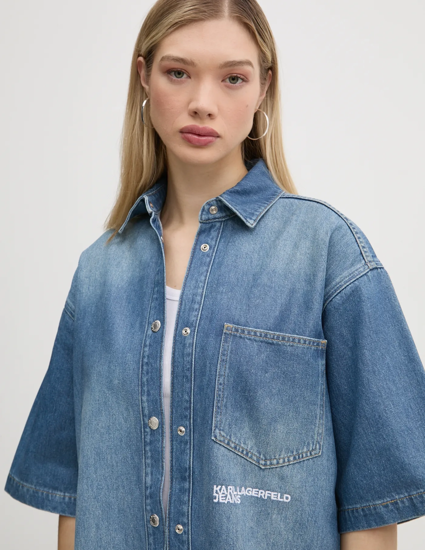Karl Lagerfeld Джинсовая рубашка из джинсовой ткани. Модель изготовлена ​​из дышащего хлопкового материала.