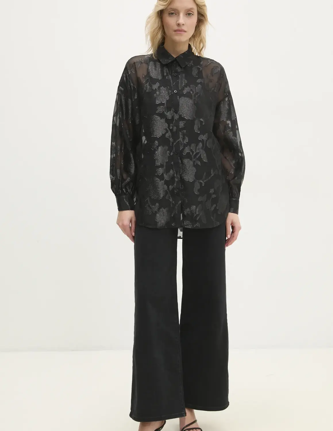 Рубашка Answear Lab из ткани с рисунком. Модель из мерцающей ткани с металлизированной нитью.
