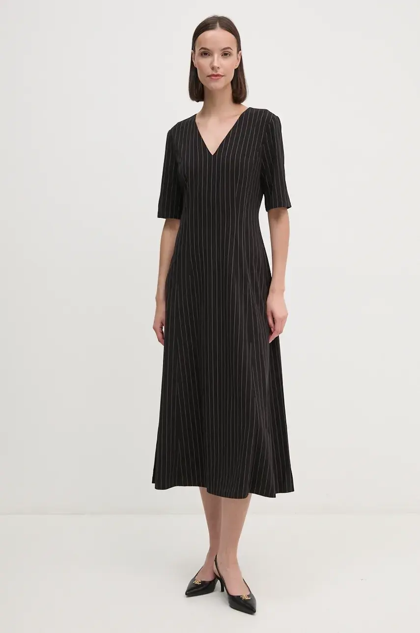 Дкное платье. Изготовлен из узорчатой ​​ткани. Содержание полиэстера делает материал более устойчивым к морщинам.