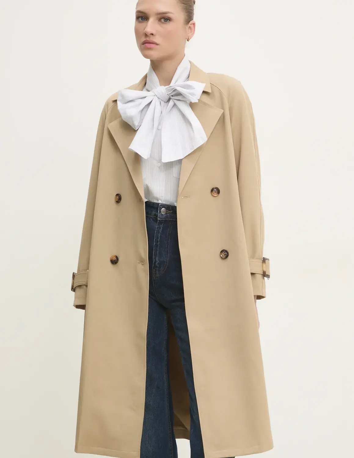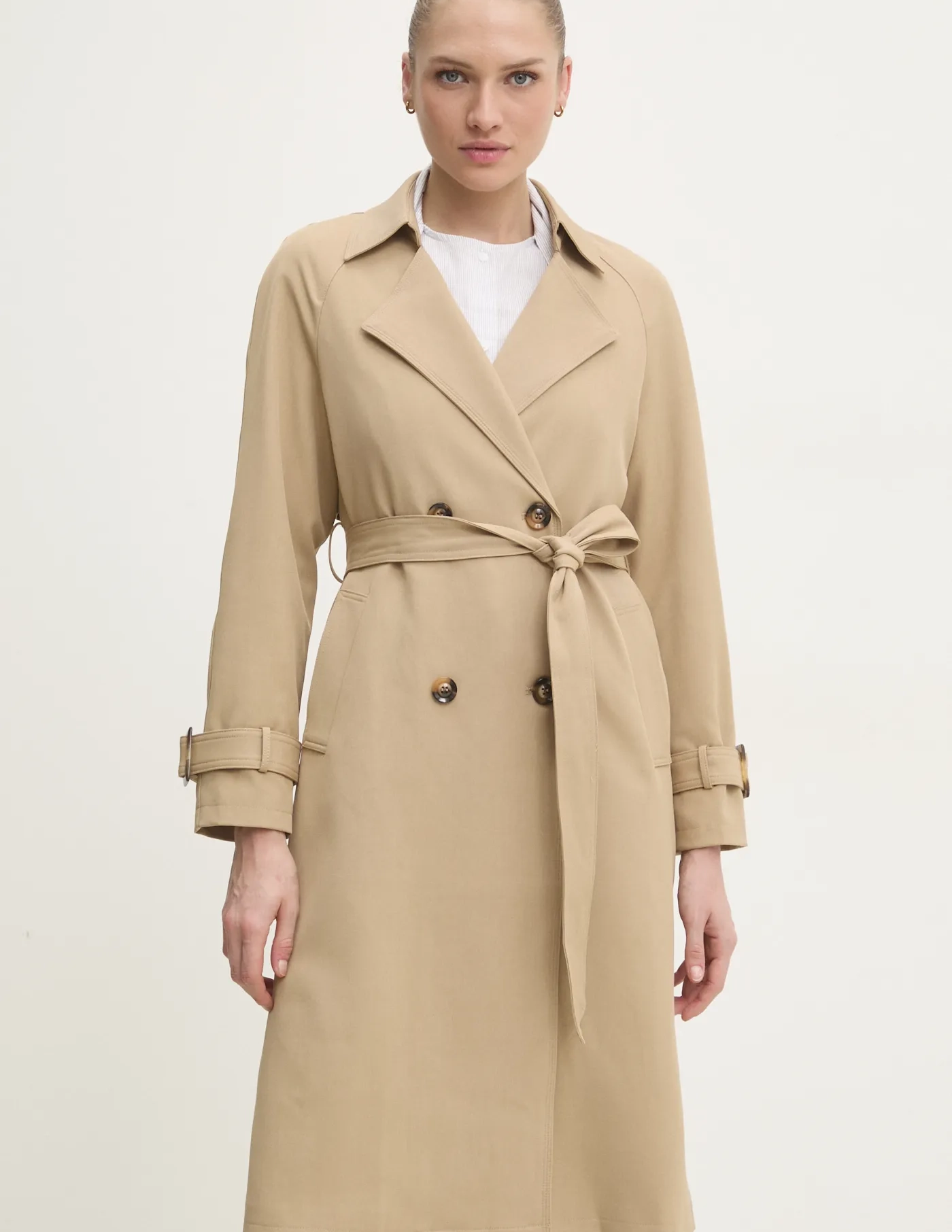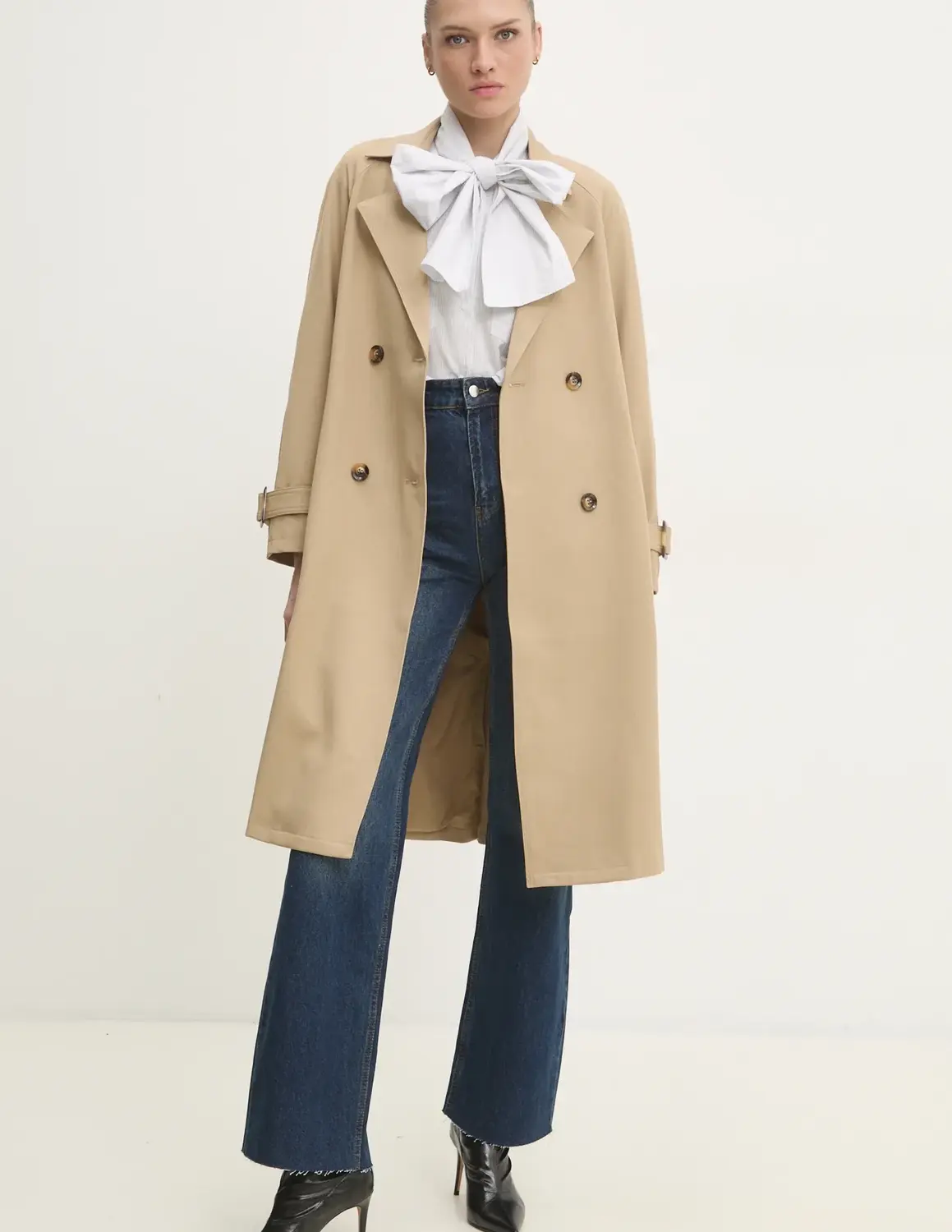 Тренч Answear Lab. Изготовлен из неутепленной однотонной ткани. Содержание полиэстера делает материал более устойчивым к морщинам.