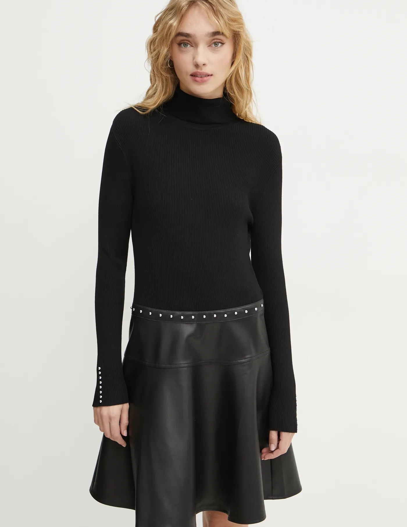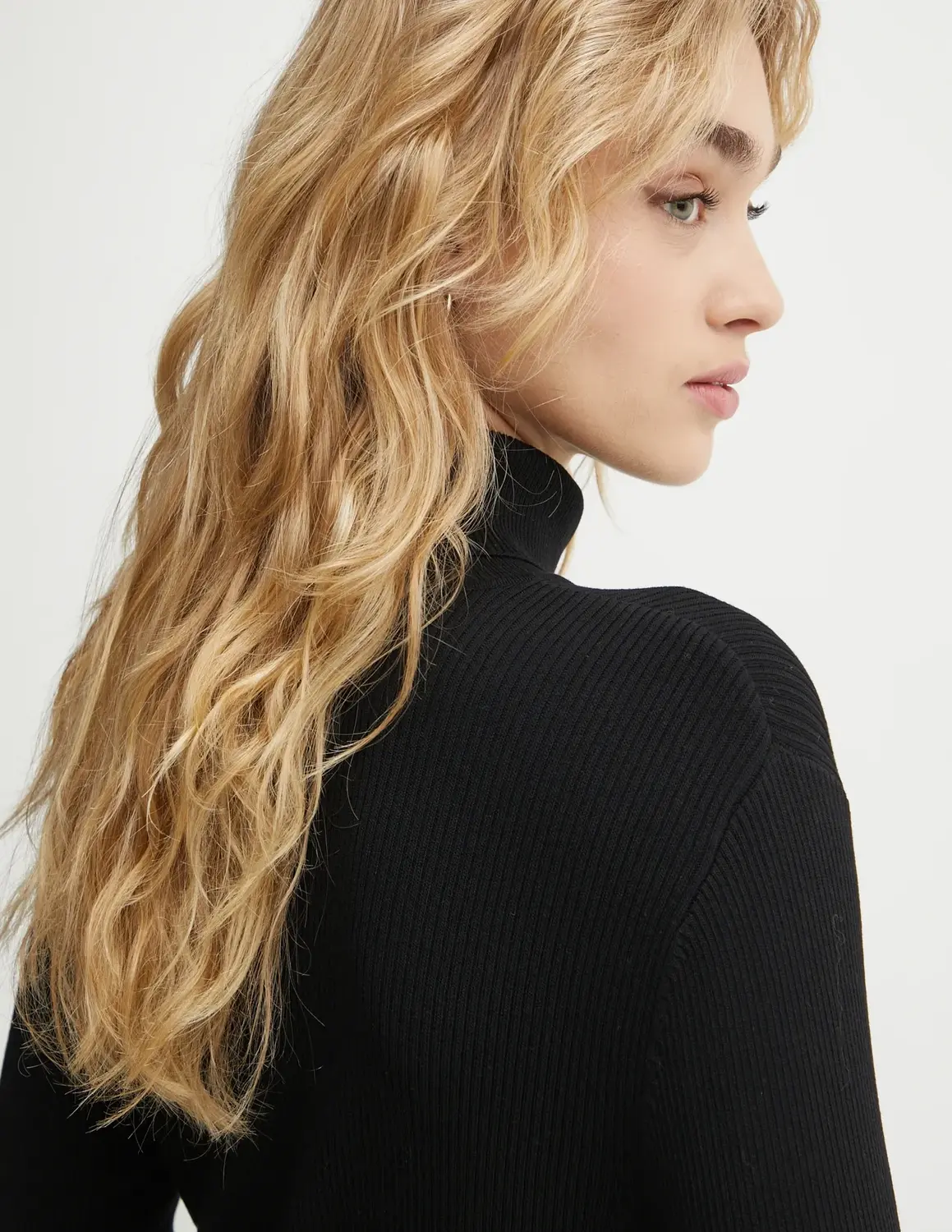Морган оделся. Изготовлен из комбинации двух разных материалов. Модель изготовлена ​​из эластичного материала и плотно прилегает к телу.