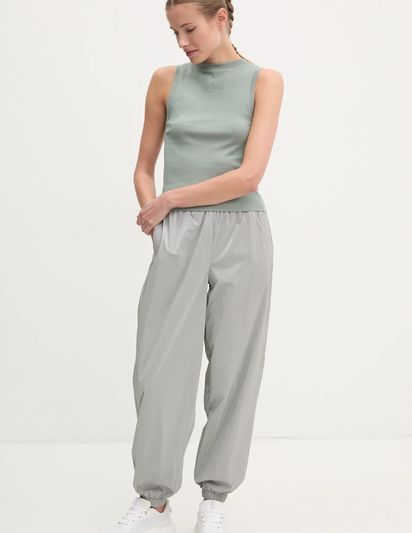 Спортивные брюки Guess из однотонной ткани. Модель из блестящей ткани с великолепным эффектом.