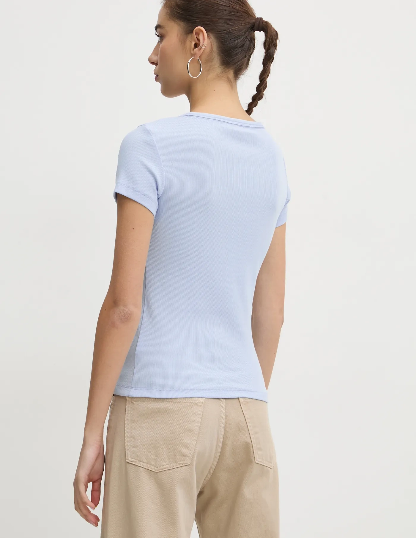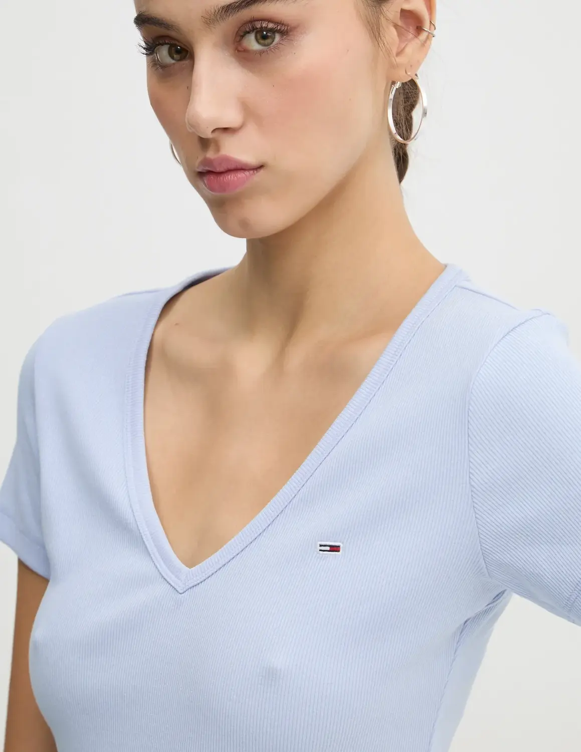 Легкая футболка Tommy Jeans из ребристого трикотажа. Материал с высокой эластичностью гарантирует полную свободу движений.