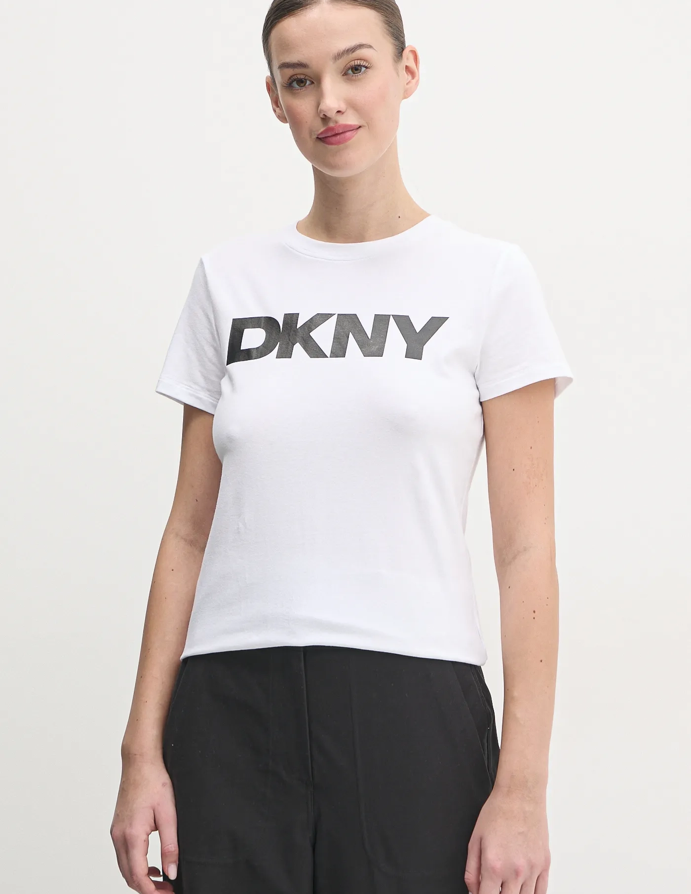 Футболка Dkny из трикотажа стрейч. Модель изготовлена ​​из дышащего материала с высоким процентом хлопка.
