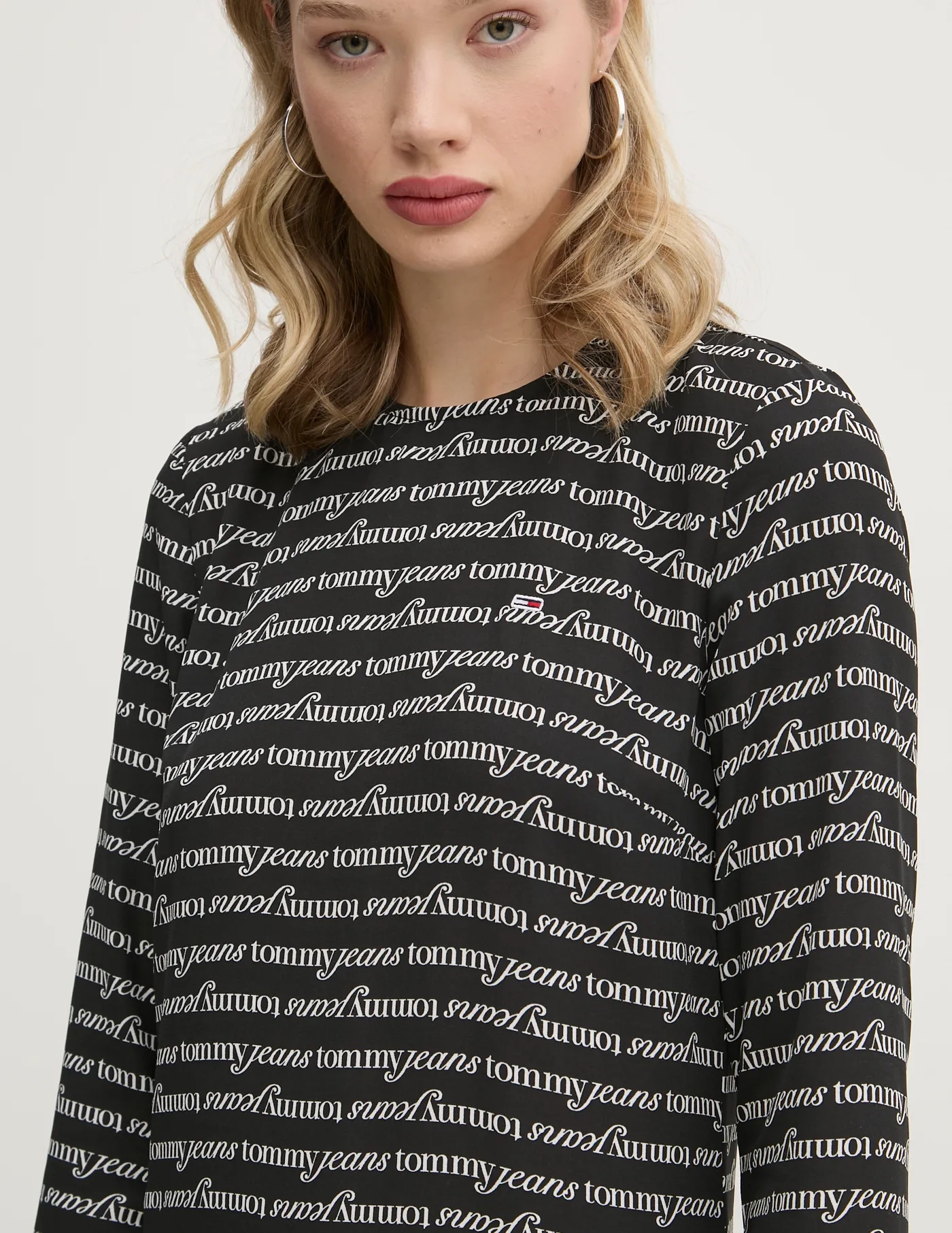 Легкое платье Tommy Jeans. Изготовлен из узорчатой ​​ткани. Модель из легкого материала идеальна для жаркого сезона.