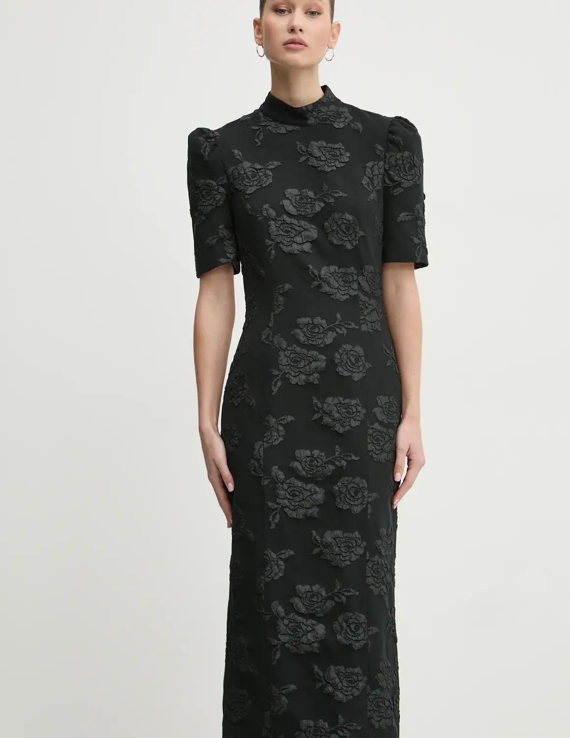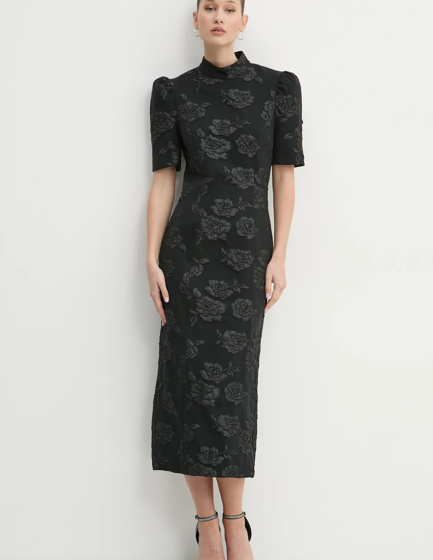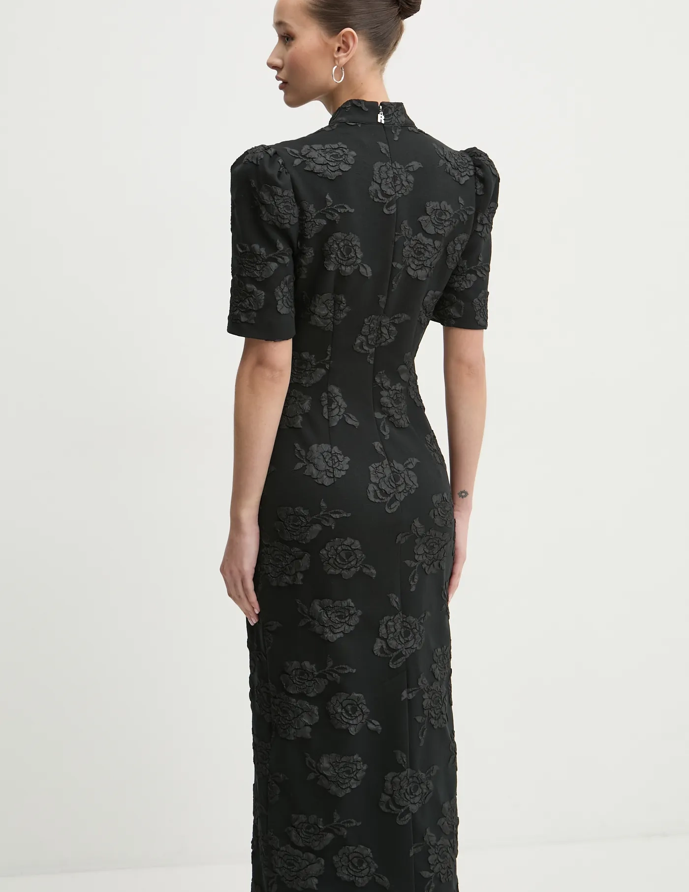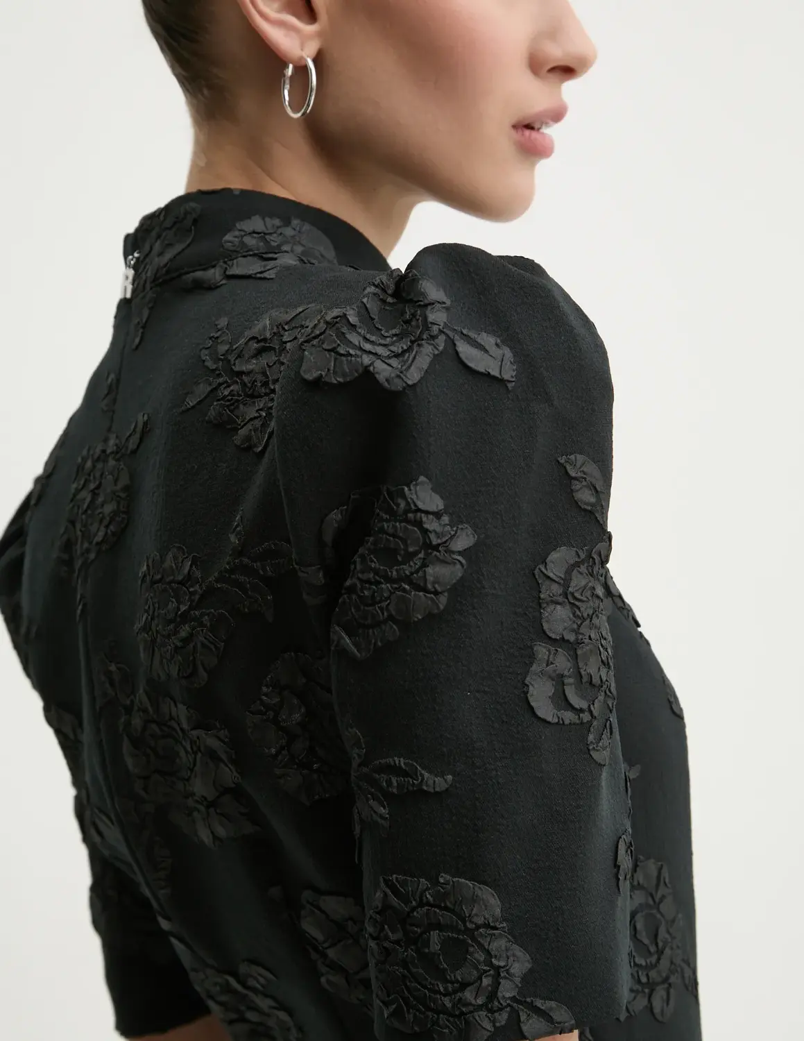 Поворот платья. Изготовлен из тонкой, слегка эластичной ткани. Содержание полиэстера делает материал более устойчивым к морщинам.