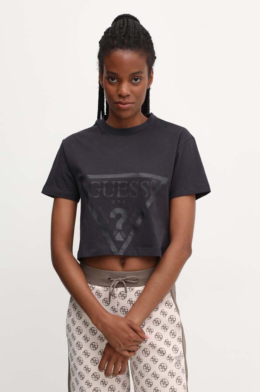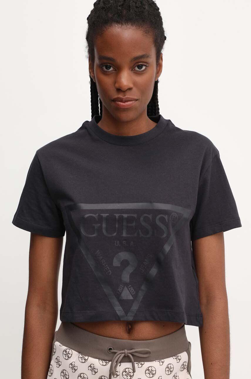 Футболка Guess из трикотажного полотна с принтом. Модель изготовлена ​​из очень комфортной хлопковой ткани.