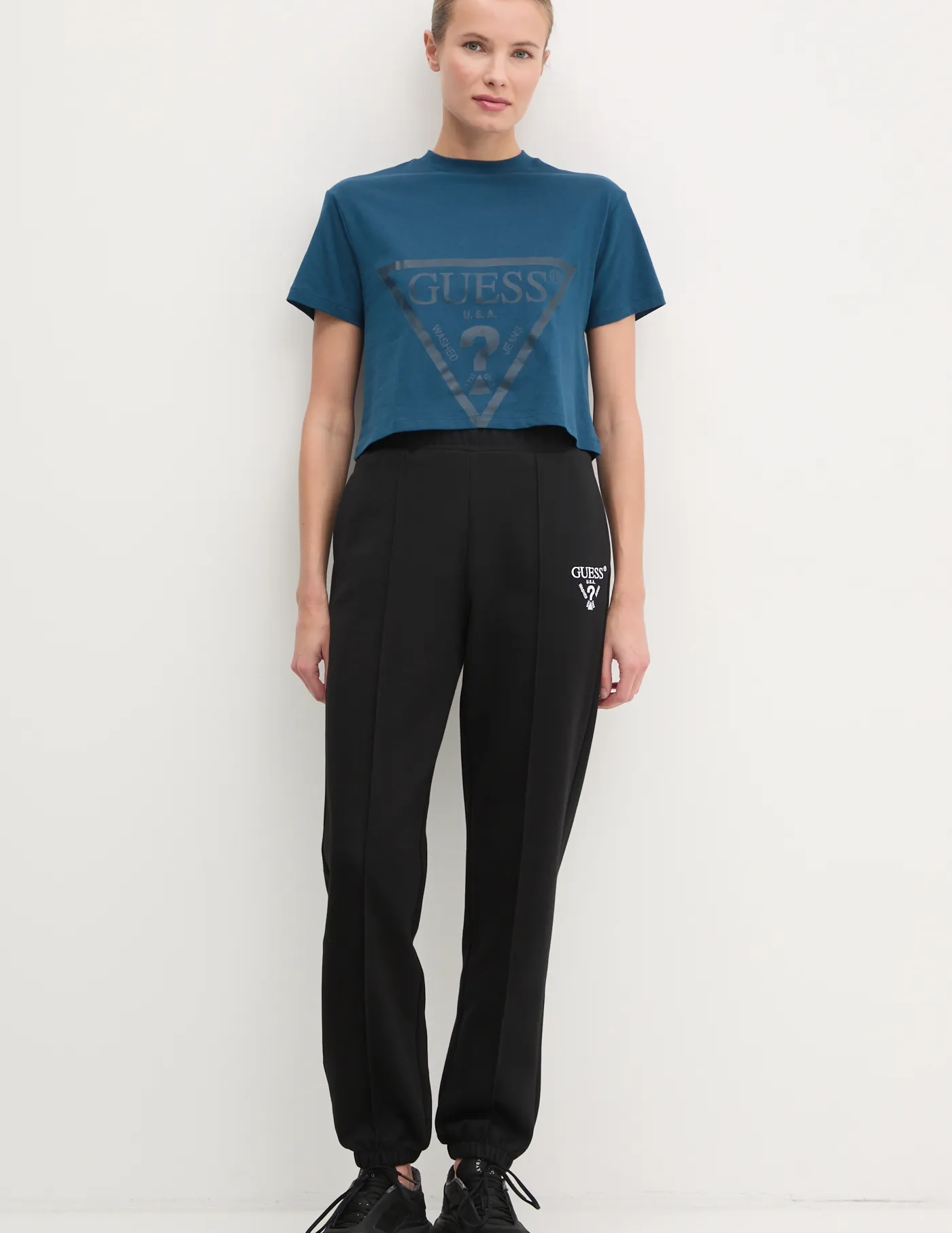 Футболка Guess из трикотажного полотна с принтом. Модель изготовлена ​​из очень комфортной хлопковой ткани.