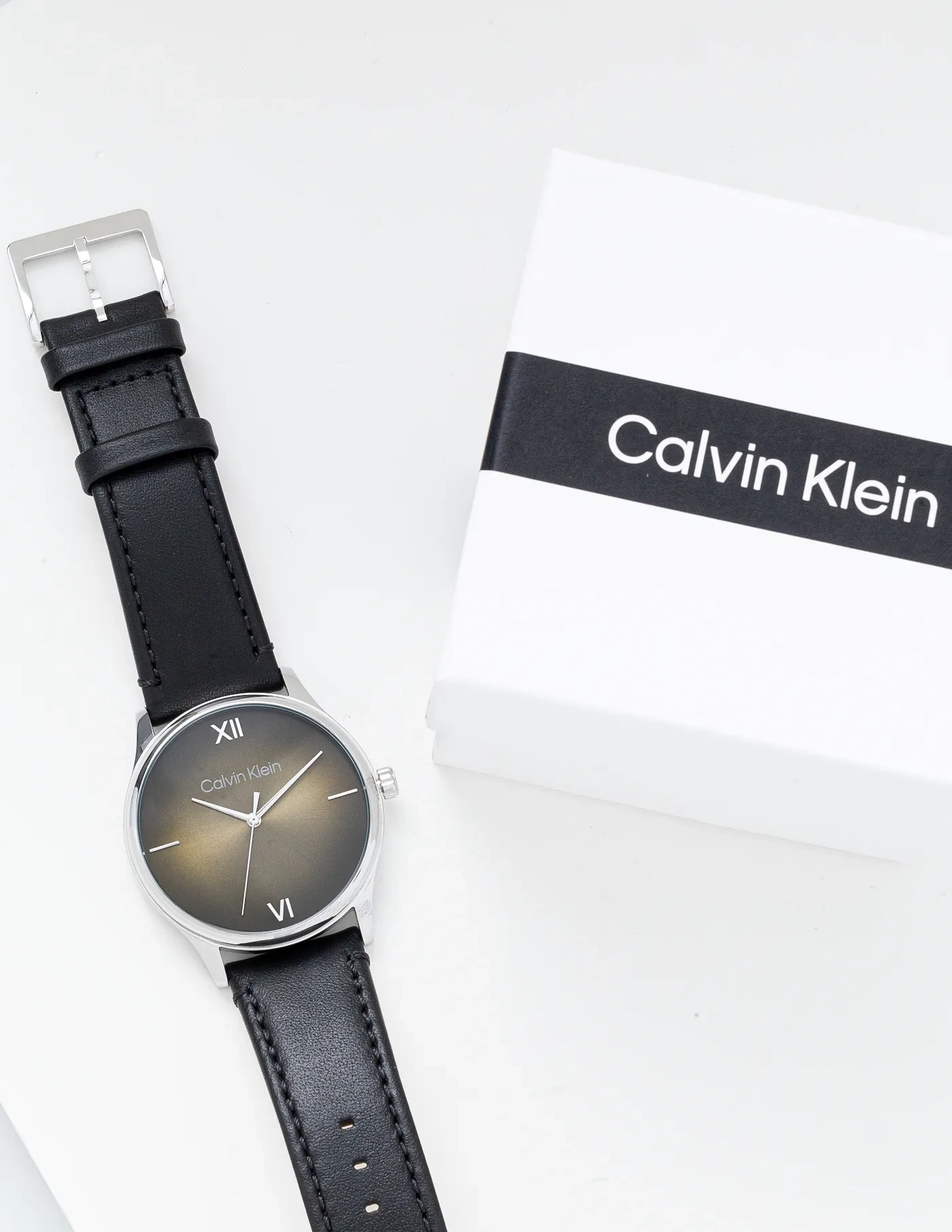 Часы Кэлвин Кляйн. Модель с круглым циферблатом и кожаным ремешком.