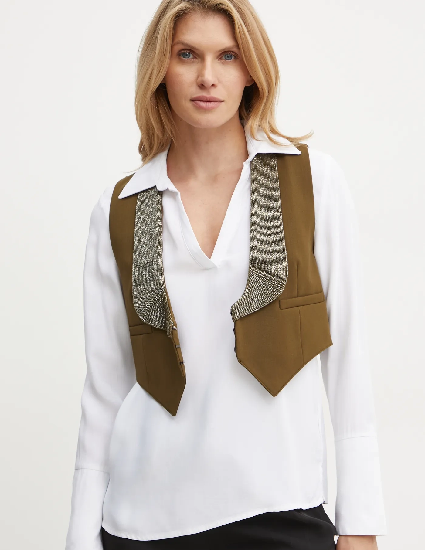Жилет Weekend Max Mara из комфортной ткани. Высокое содержание шерсти обеспечивает защиту от холода, а добавление полиэстера повышает устойчивость к морщинам.
