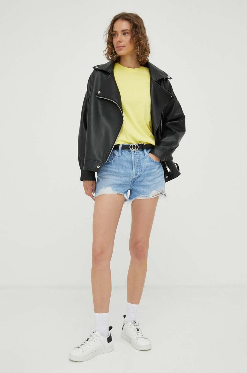 Шорты Levi’s из джинсовой ткани. Модель изготовлена ​​из чрезвычайно комфортного и дышащего материала, идеально подходящего для жаркого времени года.