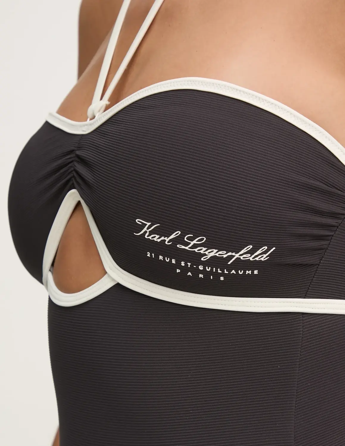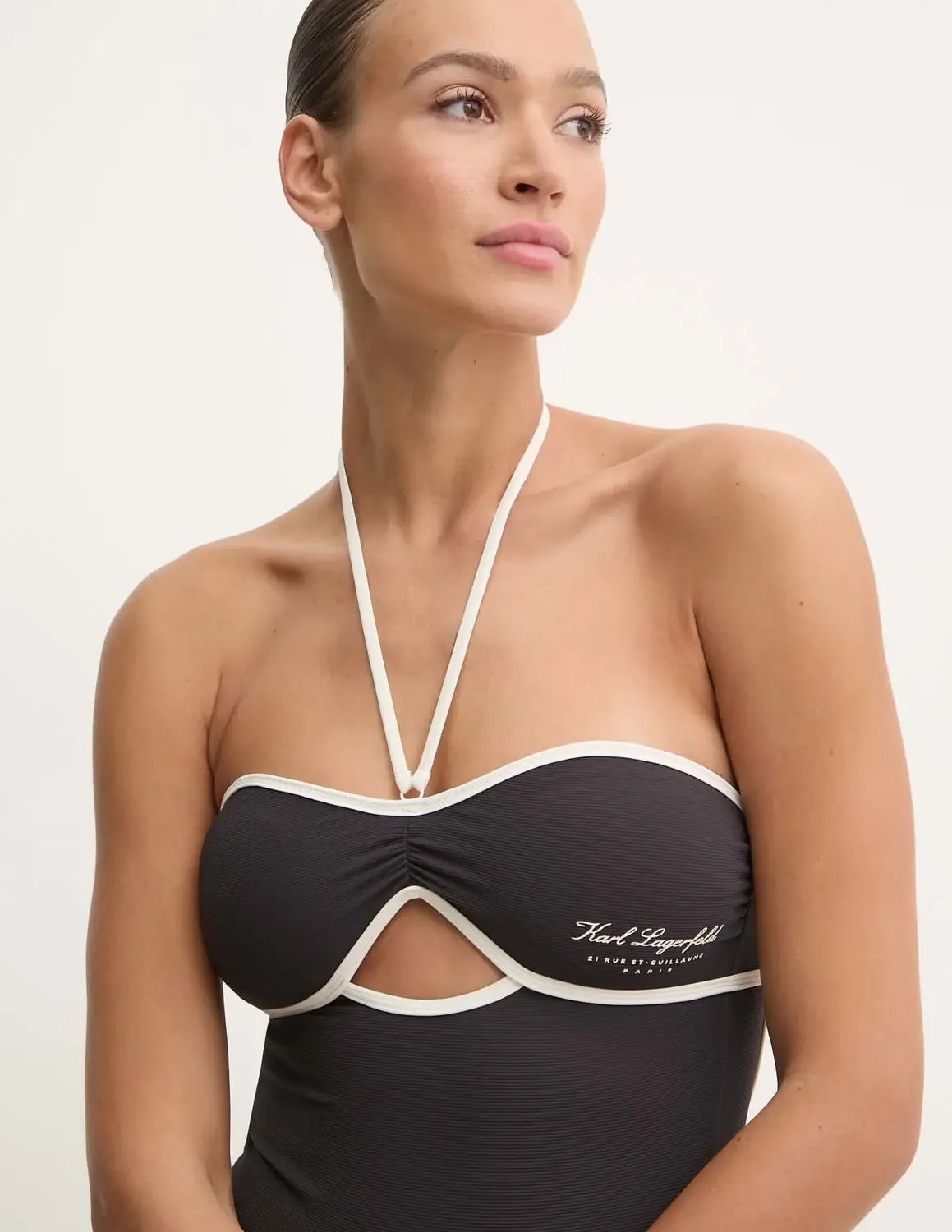 Сплошной купальник Карла Лагерфельда. Изготовлен из эластичного и плотного трикотажа.