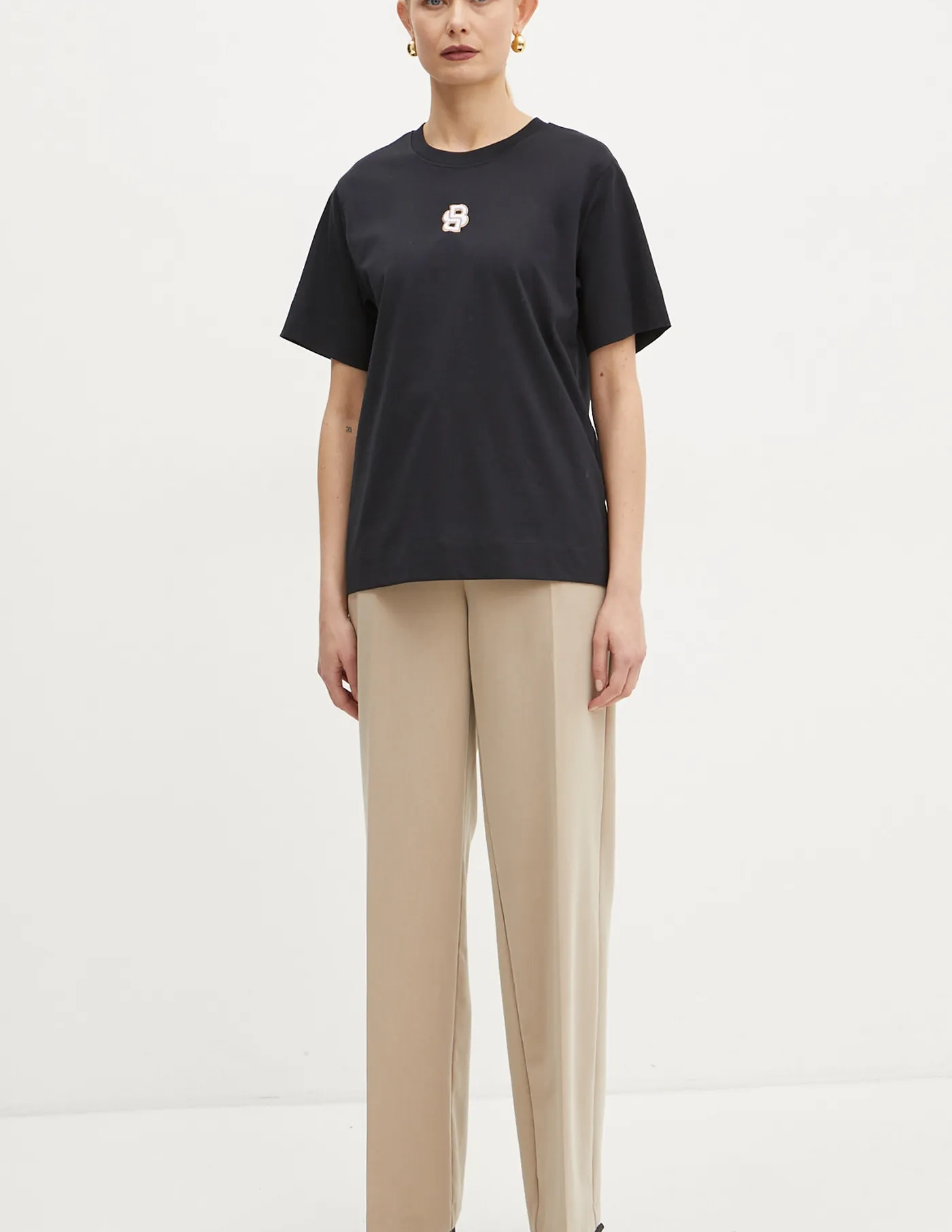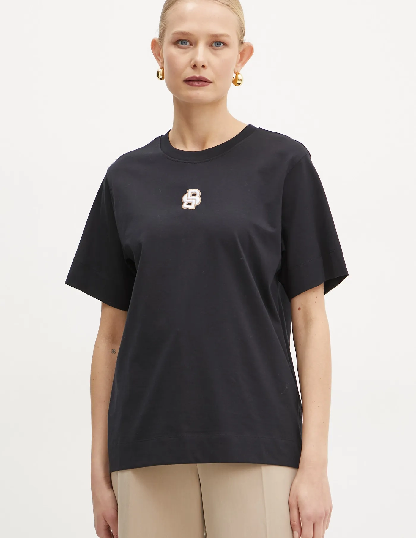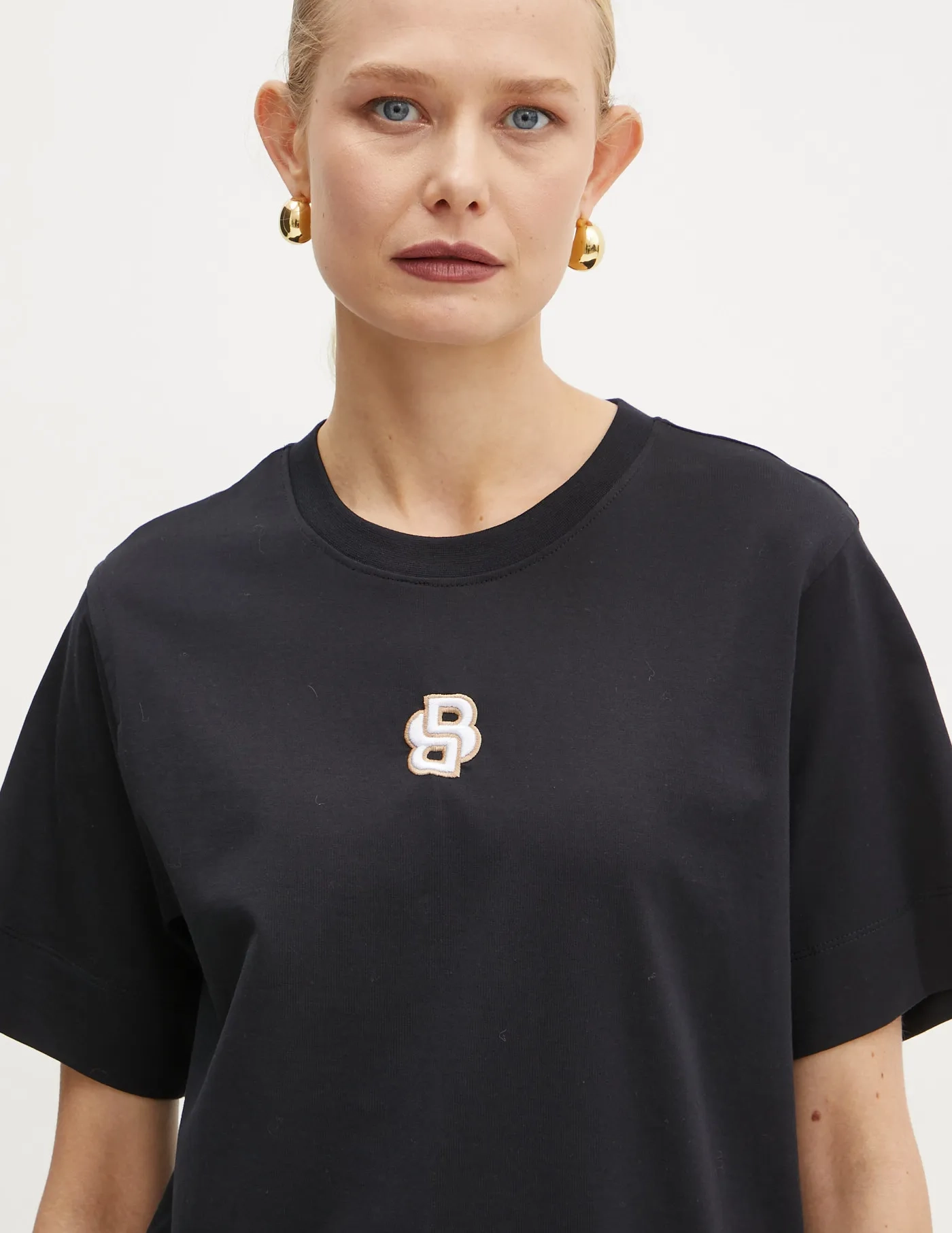 BOSS Трикотажная футболка с аппликацией. Модель изготовлена ​​из дышащего хлопкового материала.
