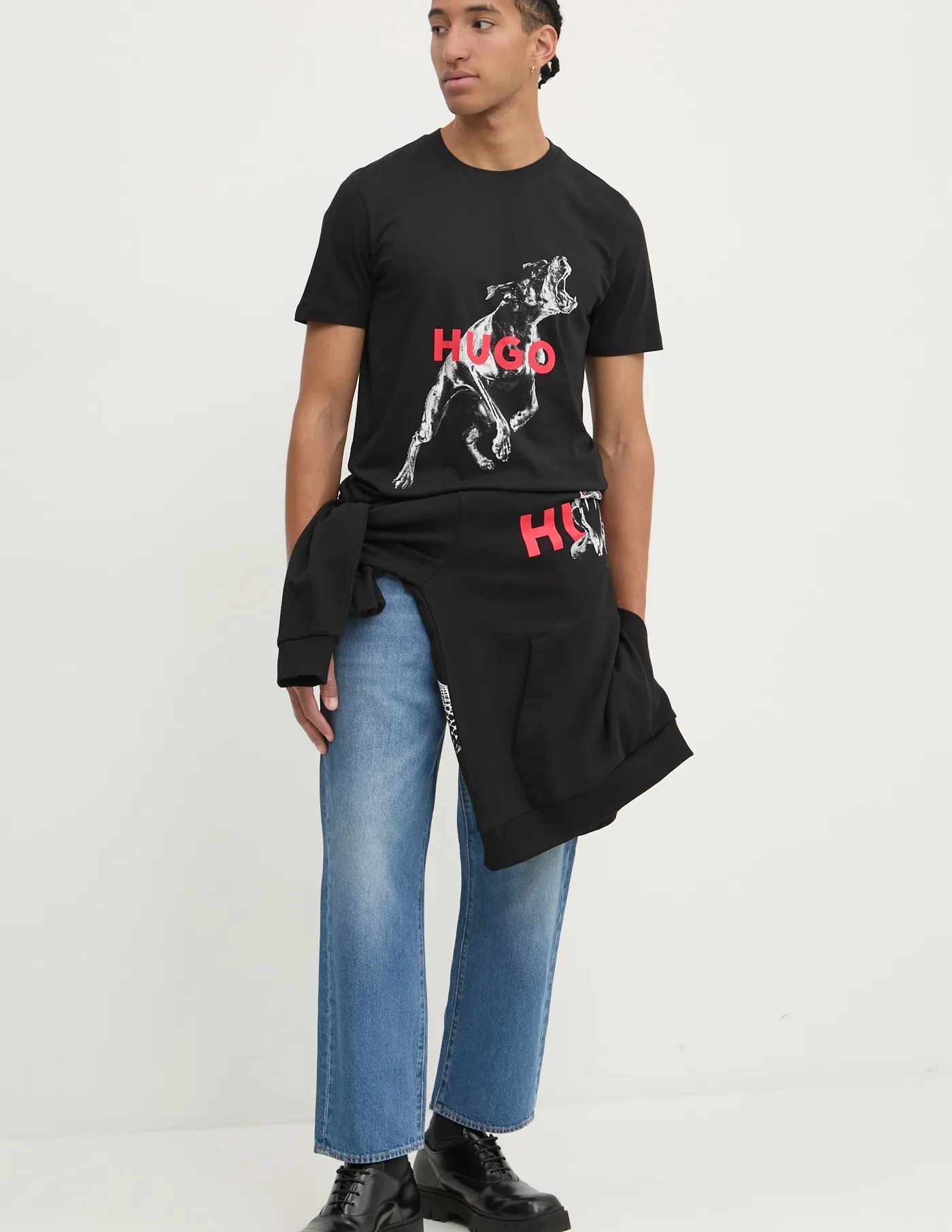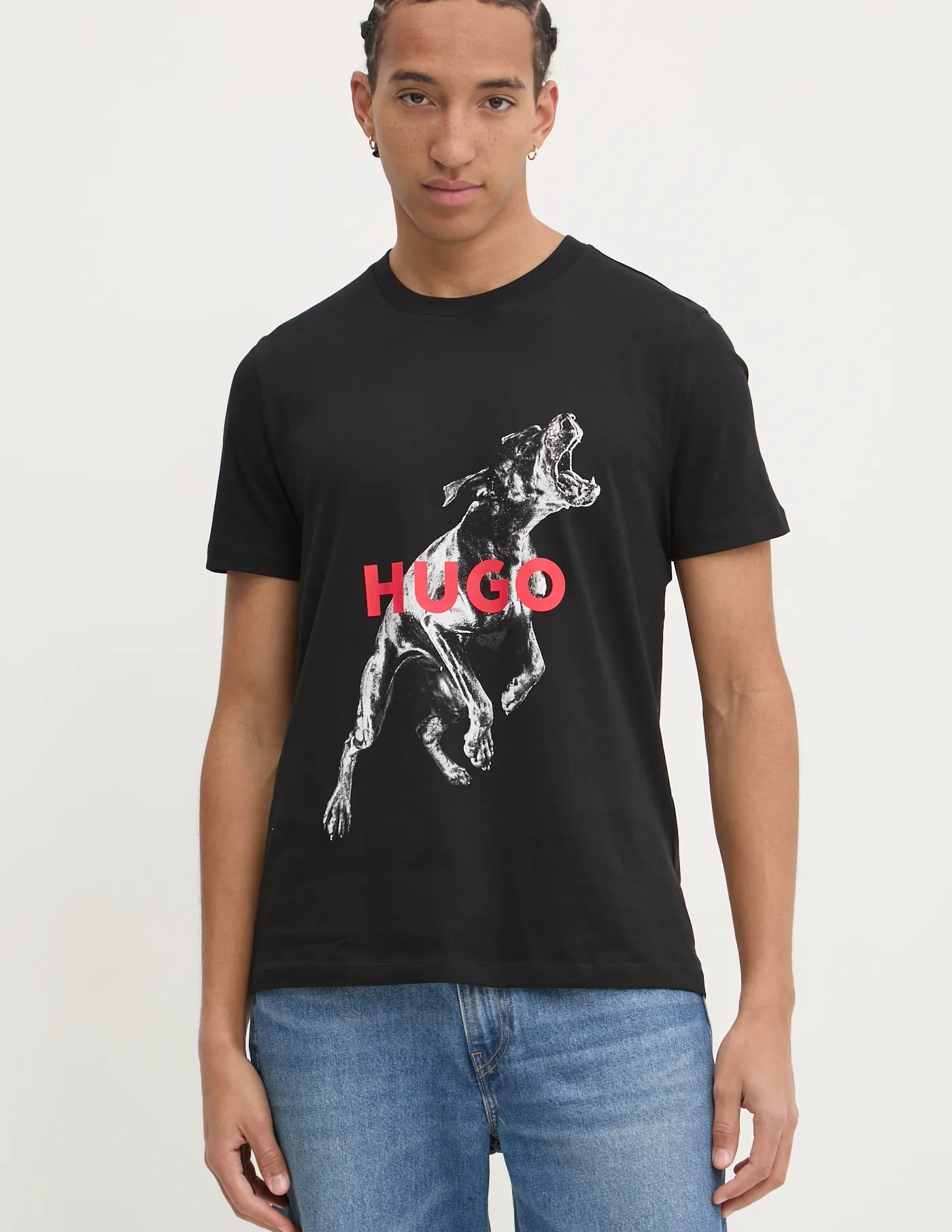 Футболка HUGO из однотонного трикотажа. Модель изготовлена ​​из очень комфортной хлопковой ткани.