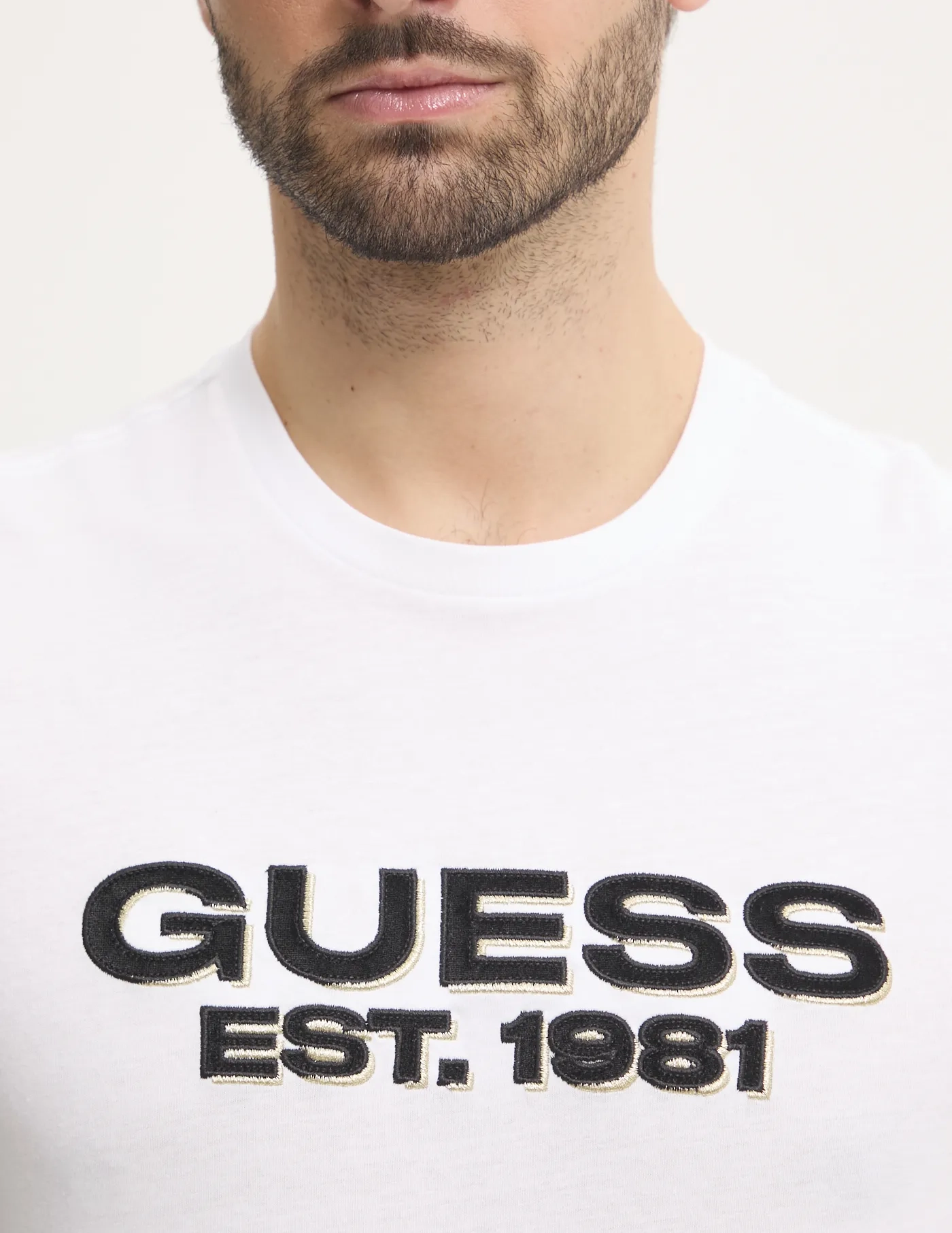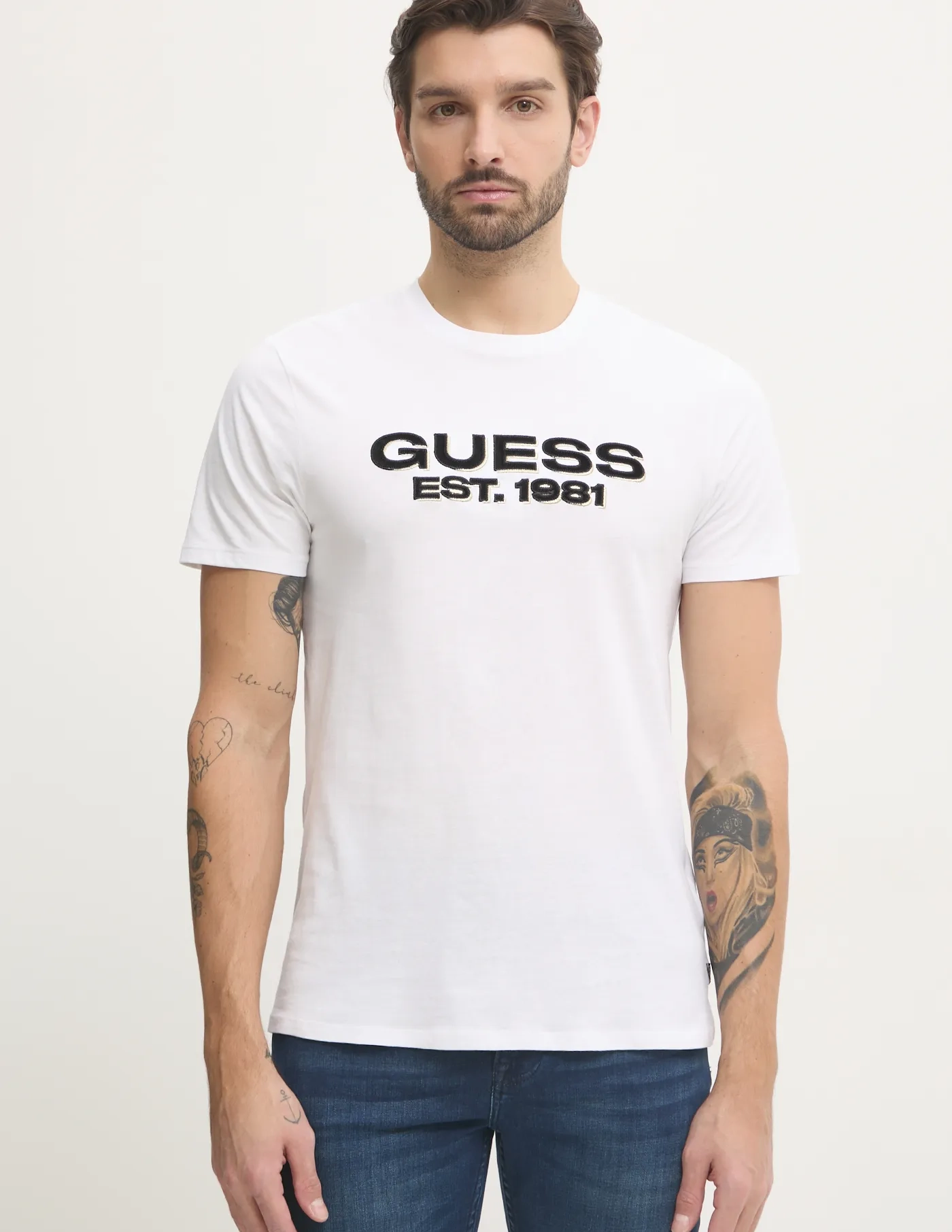 Футболка Guess изготовлена ​​из тонкого эластичного трикотажа. Модель изготовлена ​​из очень комфортной хлопковой ткани.