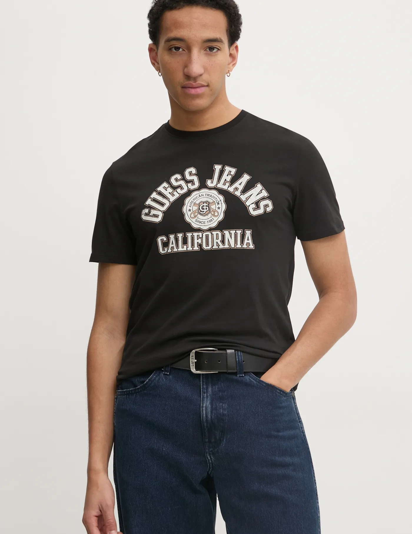 Футболка Guess Jeans изготовлена ​​из тонкого эластичного трикотажа.