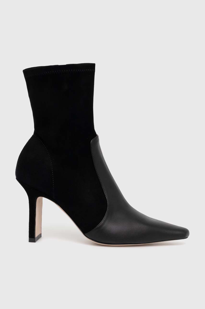 Ботильоны BOSS из натуральной кожи и ткани. Модель со стелькой из пористой кожи, предотвращающей натирание и появление неприятных запахов.
