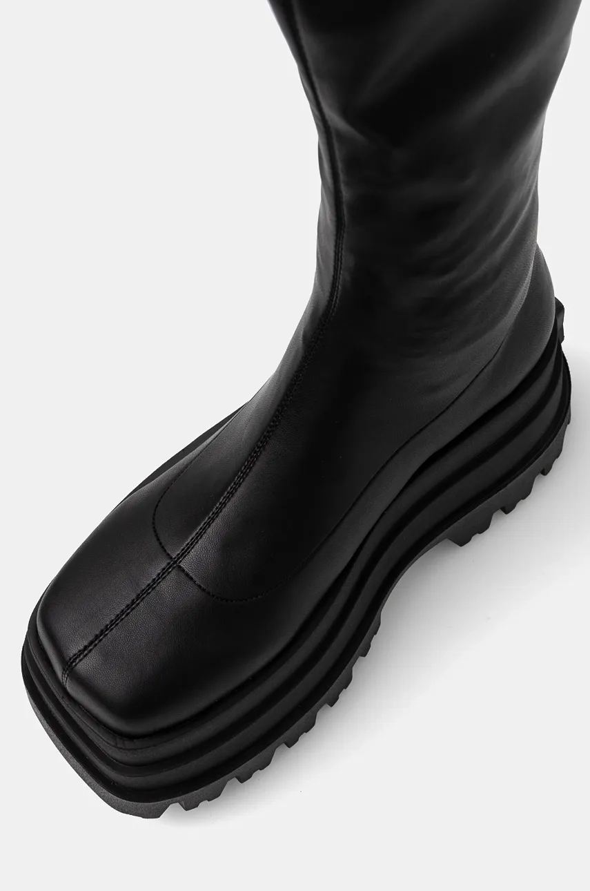 Голые высокие сапоги Wolfe. Изготовлен из синтетической кожи. Модель со съемной тканевой стелькой с принтом позволяет адаптировать обувь к размеру вашей стопы.