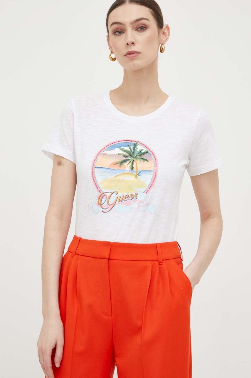Футболка Guess из эластичного трикотажа. Модель изготовлена ​​из льняной ткани, что гарантирует высокую устойчивость.