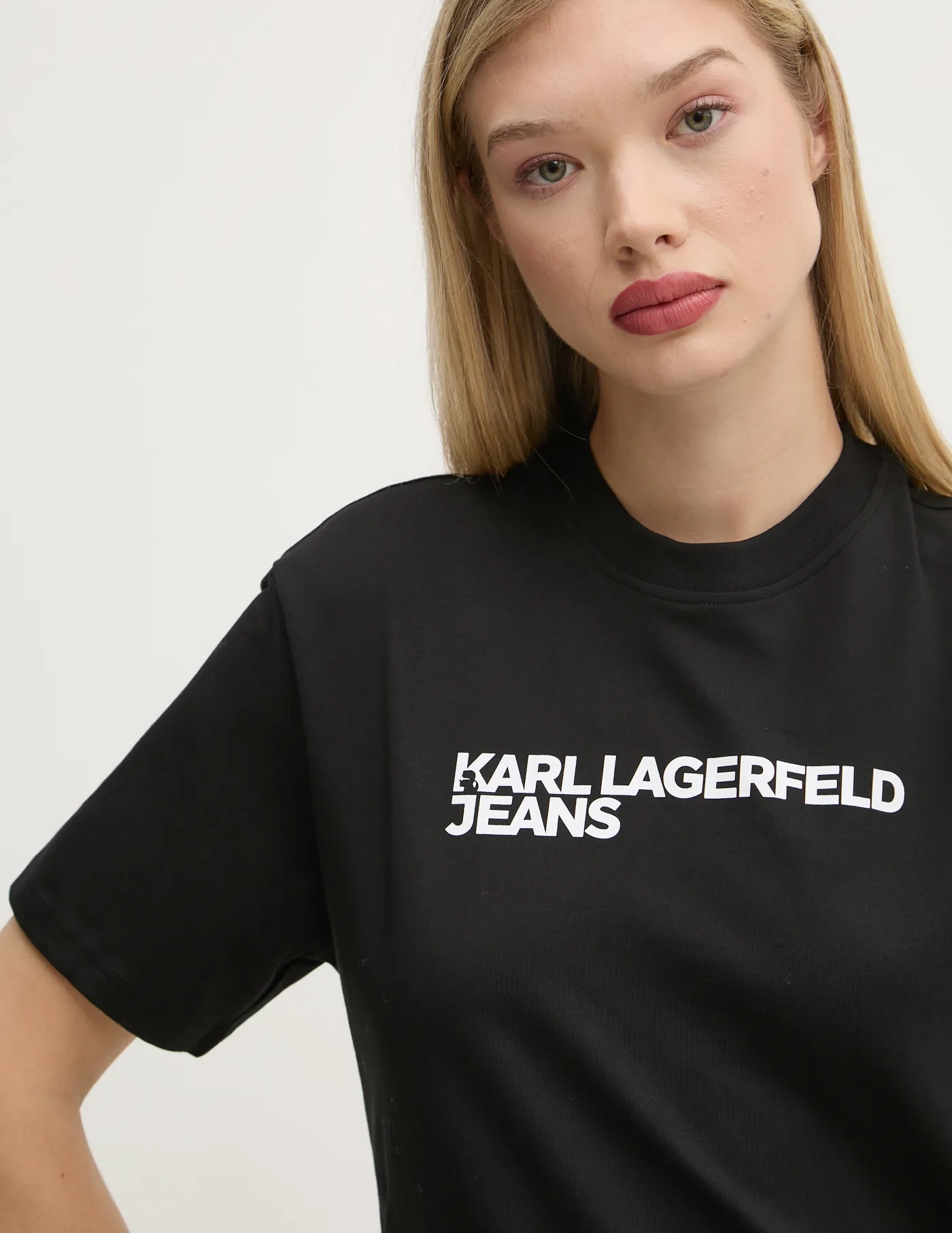 Джинсовая футболка Karl Lagerfeld из тонкого эластичного трикотажа. Модель изготовлена ​​из дышащего хлопкового материала.